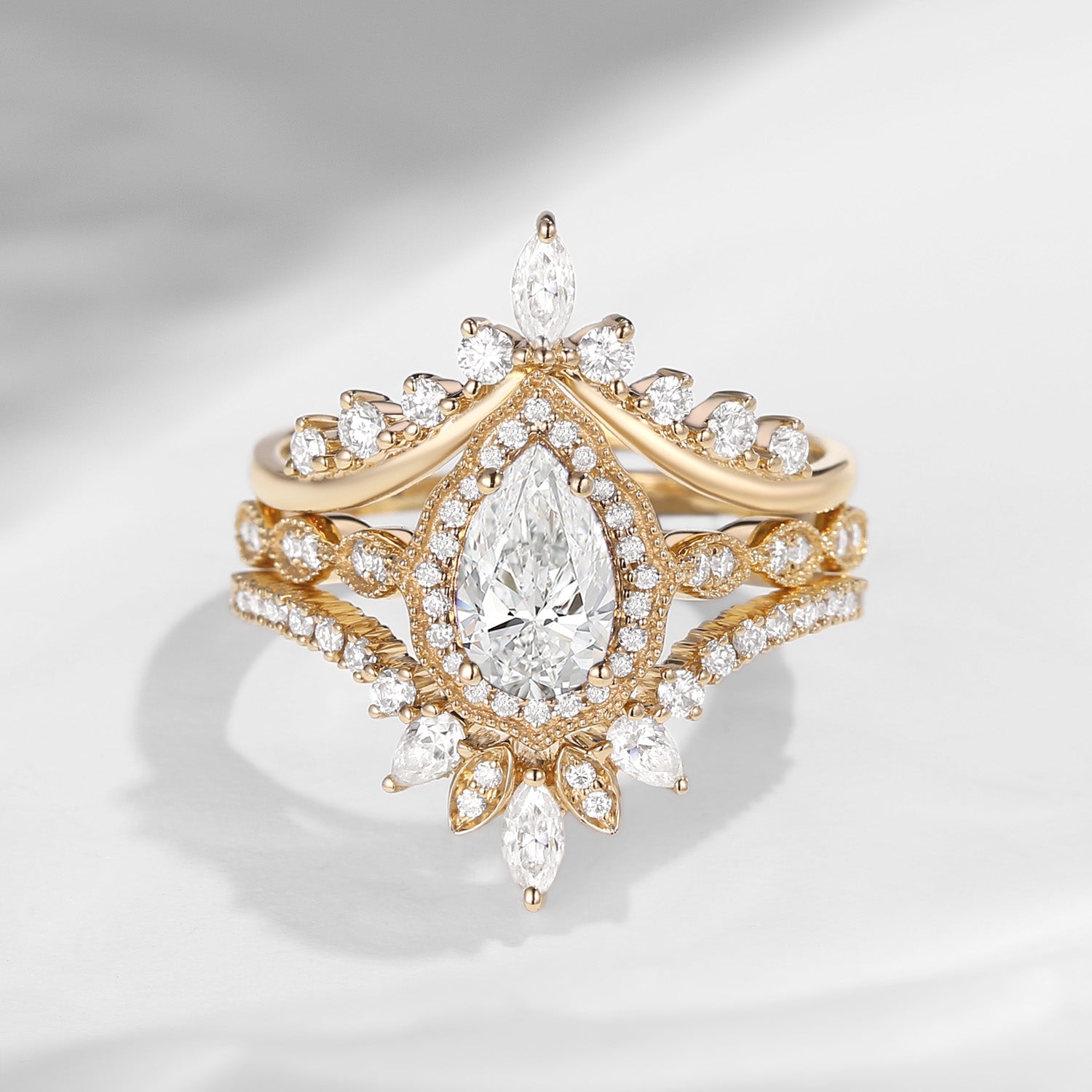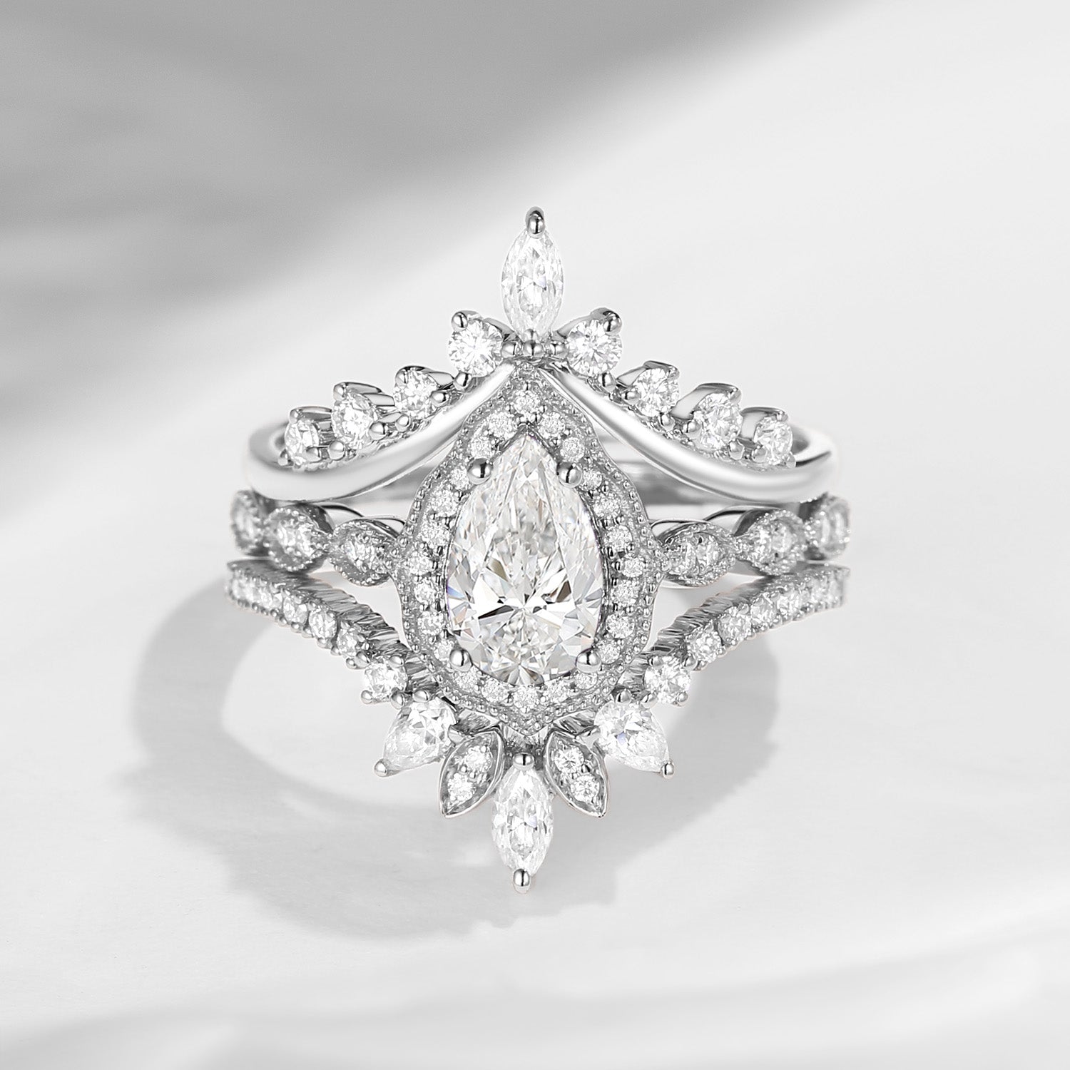 1.0-2.0ct Vintage Inspired Pear Cut Milgrain Lab Diamond Engagement Ring Set 3pcs - Diva