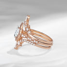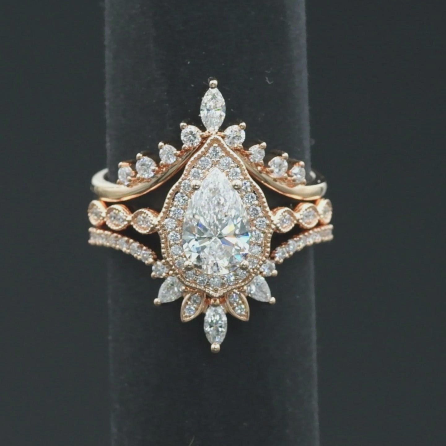 Pear shaped Lab Diamond Engagement Ring Set Rose Gold Milgrain Cluster Ring Vintage Style Unique Bridal Anniversary