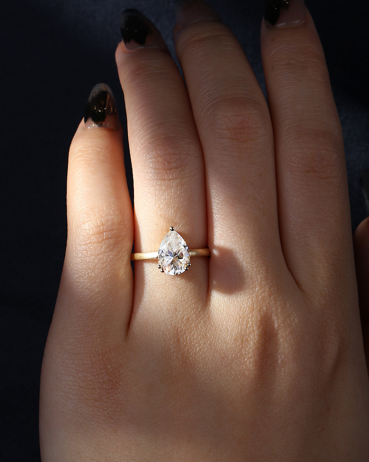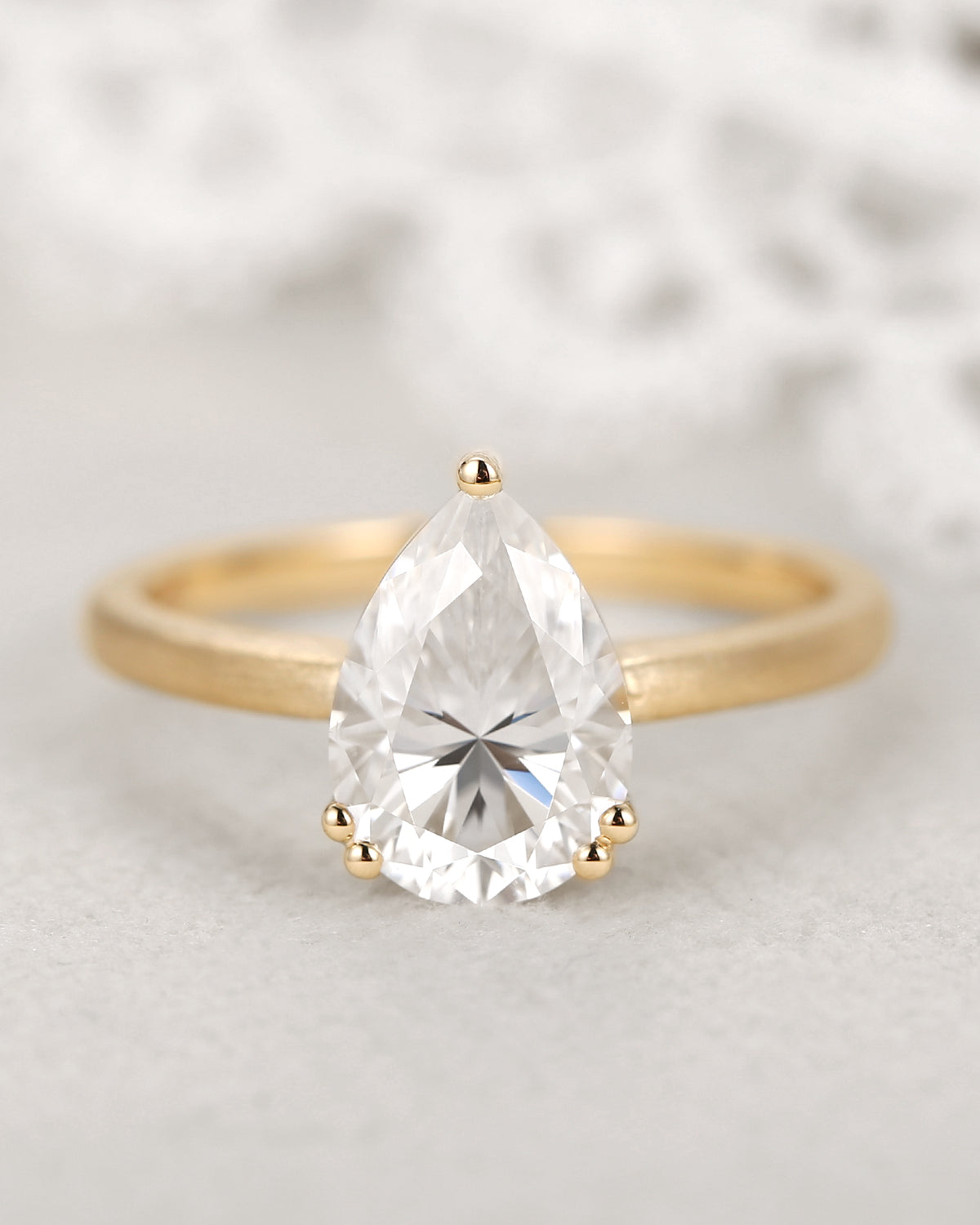 1.0-2.0ct Pear Cut Lab Diamond Solitaire Engagement Ring