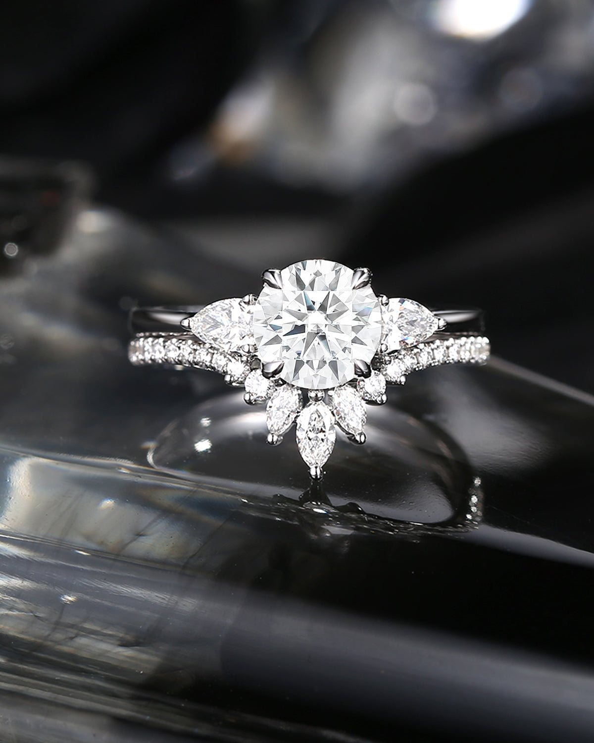 1.5ct Pear Shaped Morganite Classic Cluster Engagement Ring Set 2pcs - Vivian