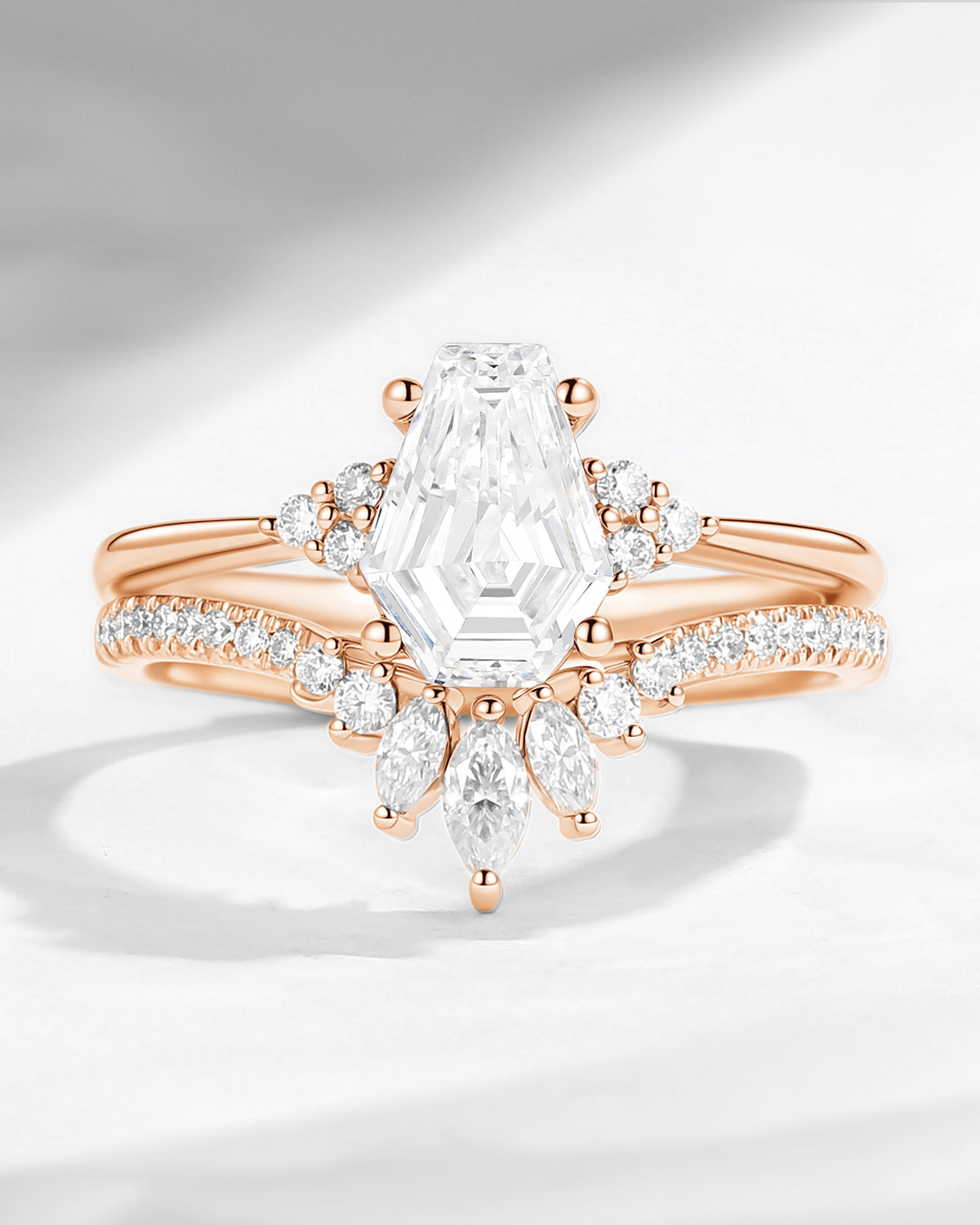 18K Unique Coffin Moonstone Engagement Ring Star Ring Set 2pcs - Coffin Kite