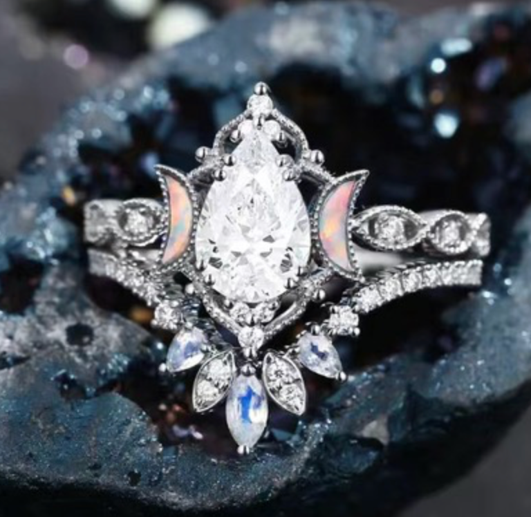Antique Pear Cut Lab Diamond Engagement Ring Set 2pcs