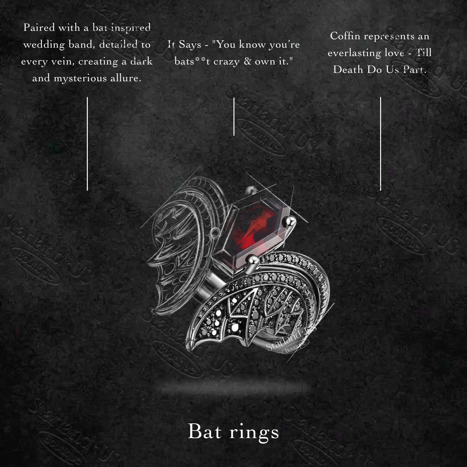 Coffin Cut London Blue Topaz Vintage Yellow Gold Dark Bat Bridal Set 2pcs