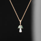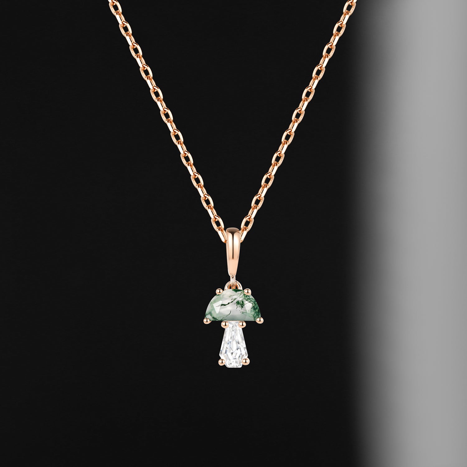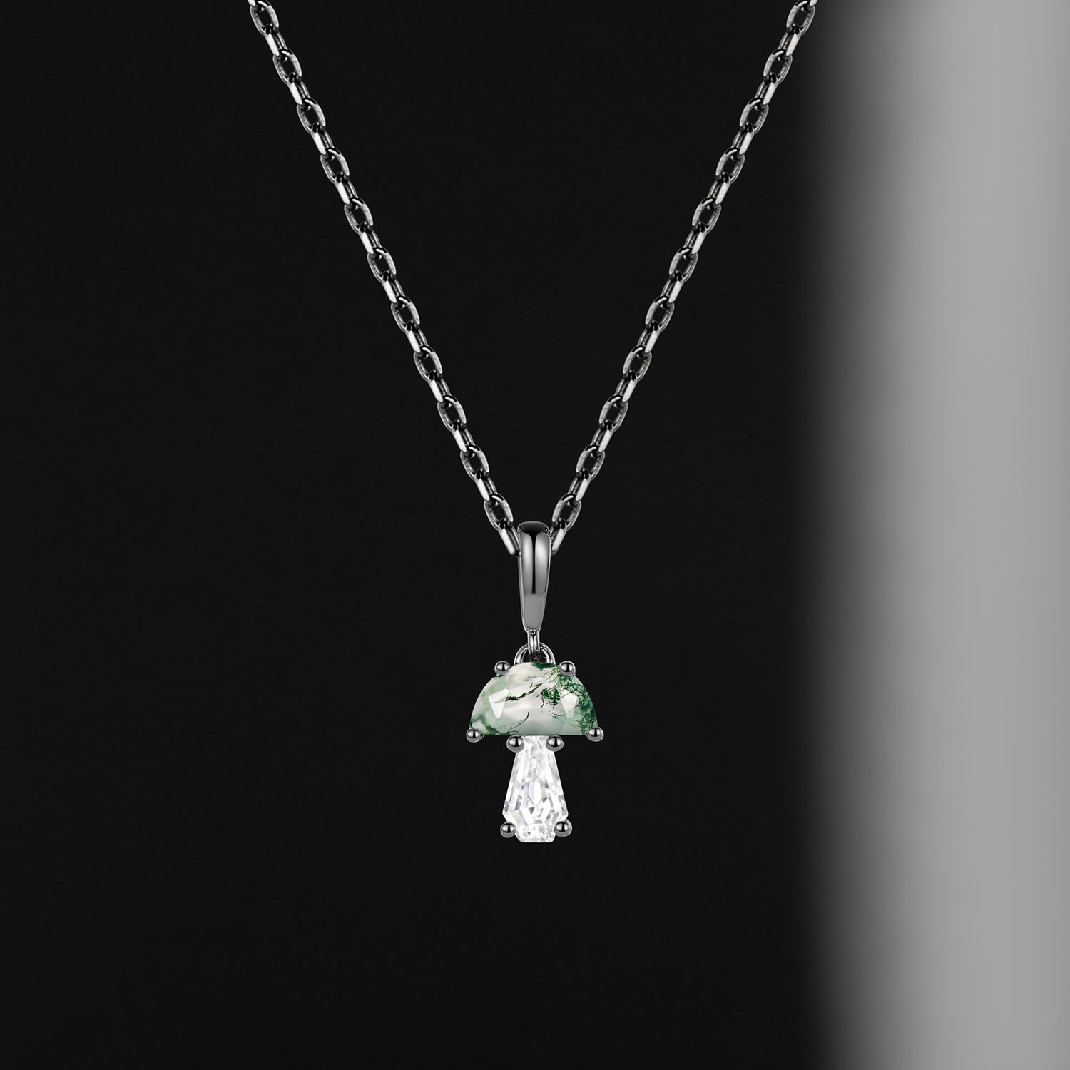 Unique Half Moon Moss Agate + Coffin Cut Moissanite Mushroom Necklace - 'Tree of Life'