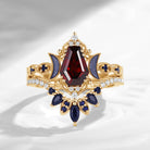 Crescent Moon | Coffin Cut Garnet Black Gold Engagement Ring Set 2pcs- 'Ultra Galaxy'