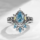 Pear Cut Blue Lab Diamond Engagement Ring Infinity Ring Vintage Style Cluster Moon Wedding Ring Set 2pcs