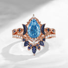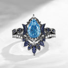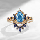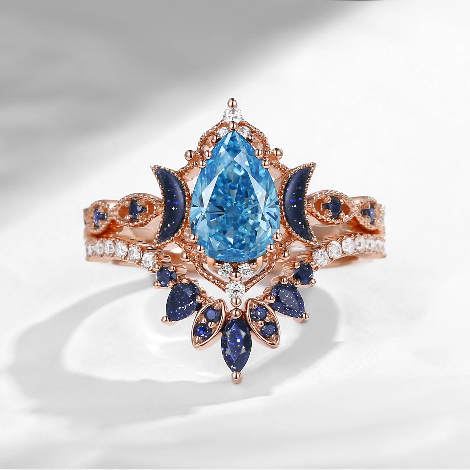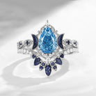 Crescent Moon | Pear Cut Blue Lab Diamond 'Ultra Galaxy' Blue Sandstone Engagement Ring Set 2pcs