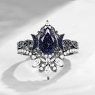 Crescent Moon | Pear Cut Blue Sandstone & Moissanite 'Ultra Galaxy' Black Gold Engagement Ring Set 2pcs