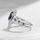 • Design - Two masterfully cut moon shaped gems guarding the center pear, clustered by little sparkly accents, mimicking a galaxy-like setting. A romantic Sci-Fi fiction at its finest.