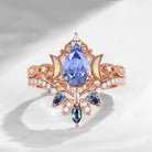 Crescent Moon | Pear Cut Lab Cornflower Sapphire & Alexandrite 'Ultra Galaxy' Engagement Ring Set 2pcs