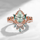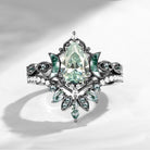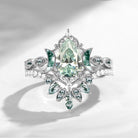 Pear Cut Mint Moissanite Engagement Ring Infinity Ring Vintage Style Cluster Moon Wedding Ring Set 2pcs