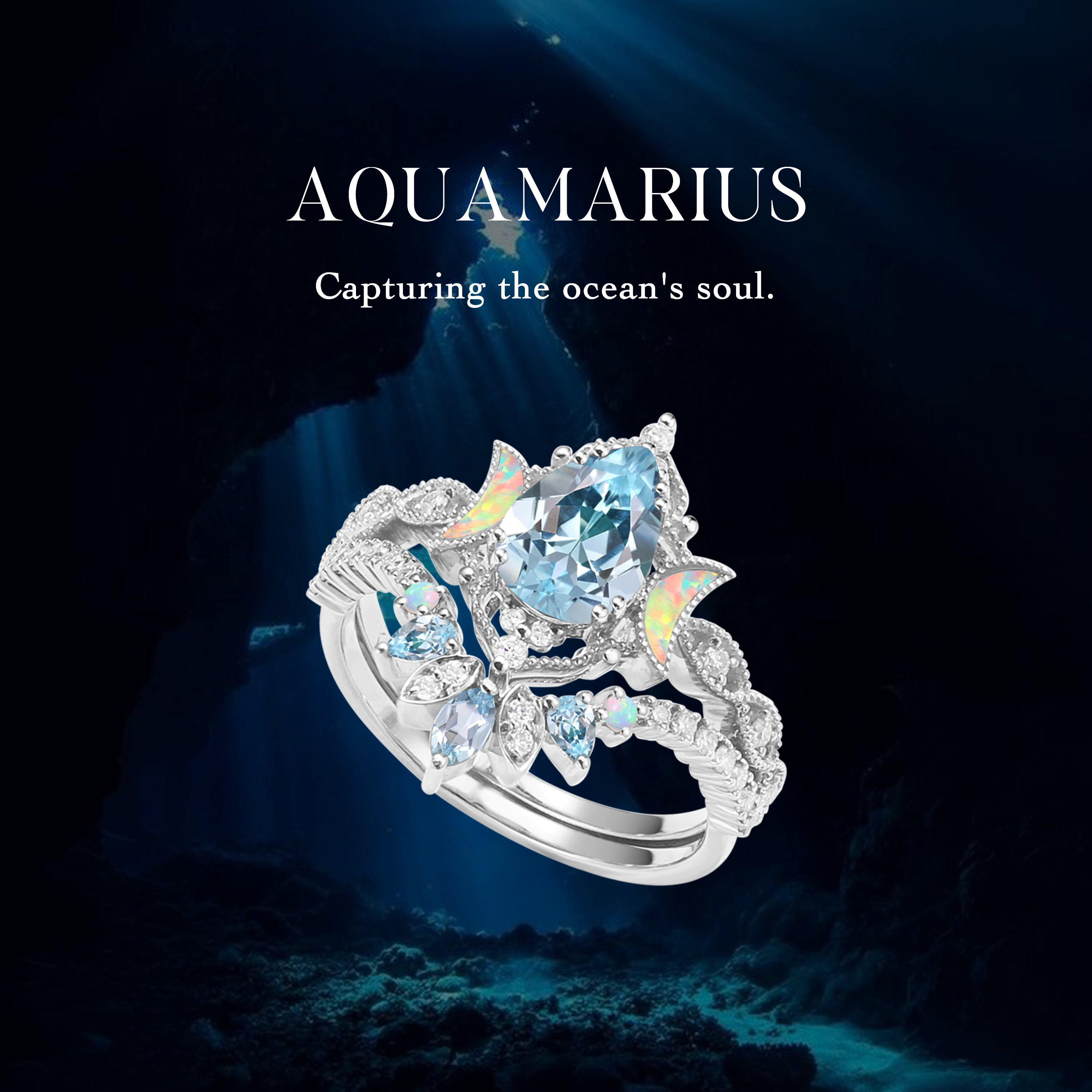 • Center Stone - Aquamarine, its calming energies reduce stress and quiet the mind.