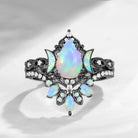 Crescent Moon | Pear Cut Natural Opal 'Ultra Galaxy' Black Gold Engagement Ring Set 2pcs