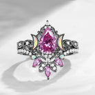 Crescent Moon | Pear Cut Pink Moissanite 'Ultra Galaxy' Black Gold Engagement Ring Set 2pcs