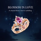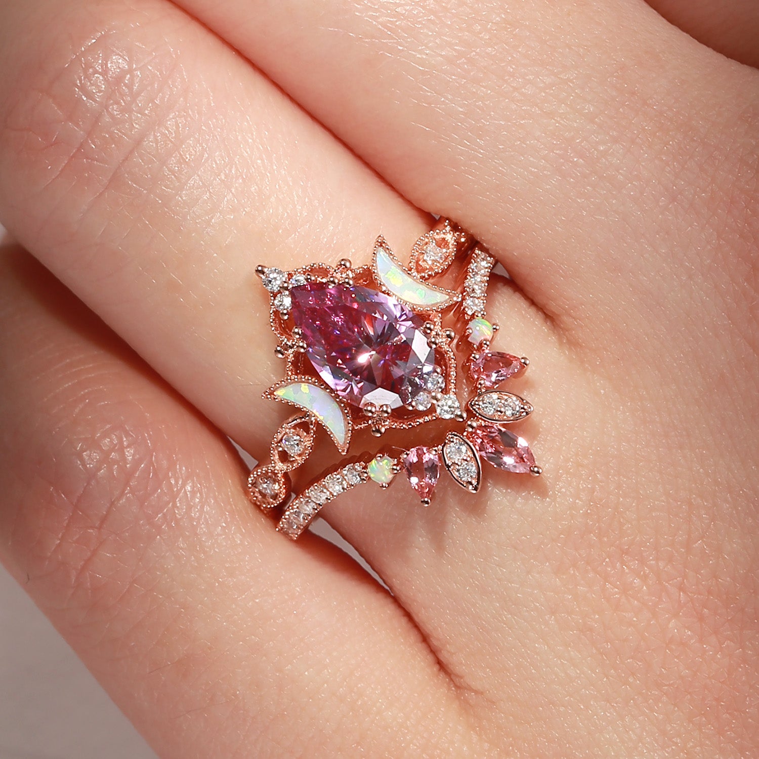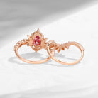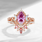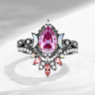 Crescent Moon | Pear Cut Pink Moissanite 'Ultra Galaxy' Engagement Ring Set 2pcs