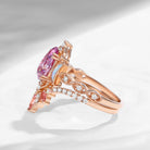 Pear Cut Pink  Moissanite Engagement Ring Infinity Ring Vintage Style Cluster Moon Wedding Ring Set 2pcs