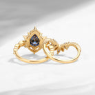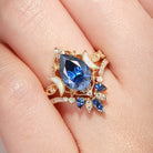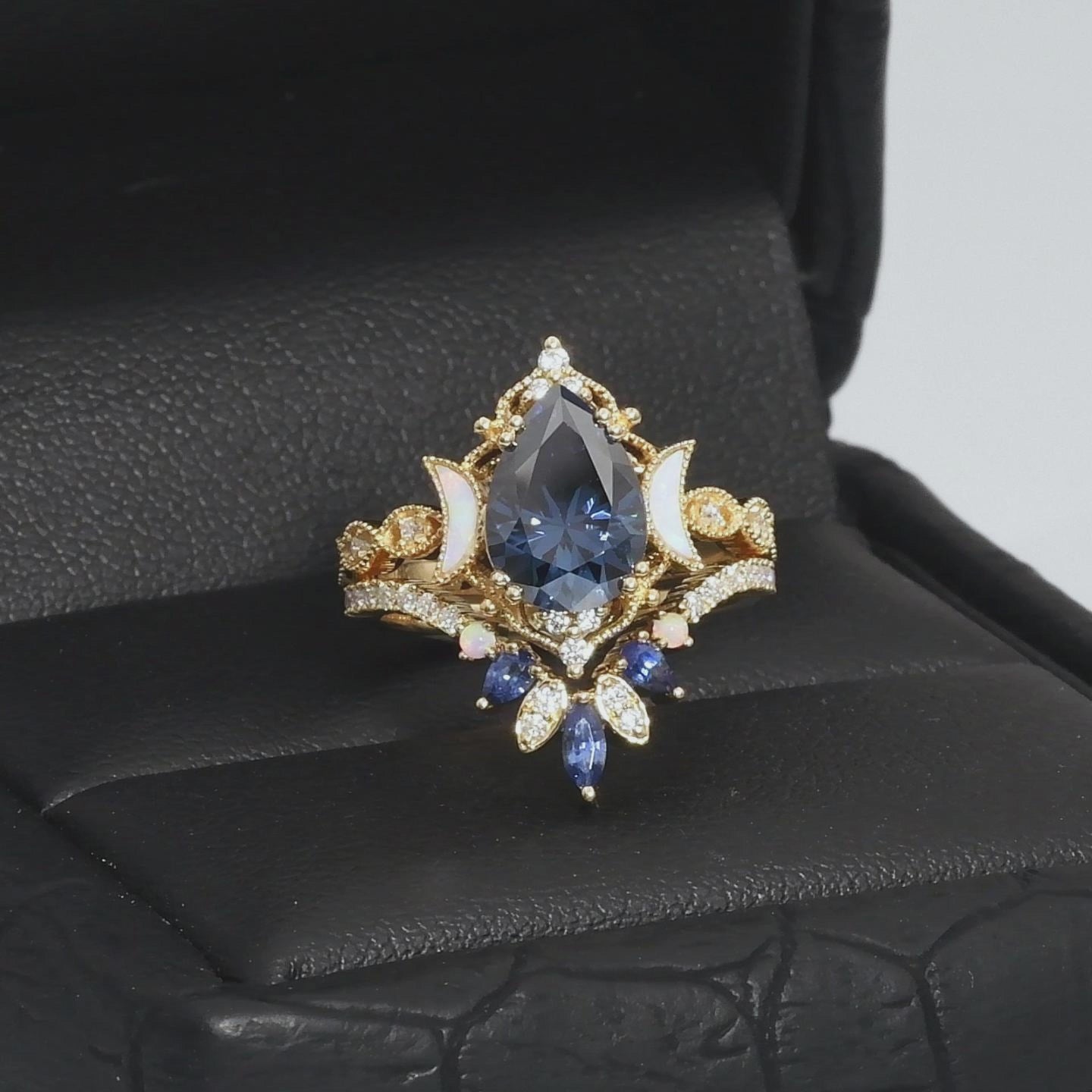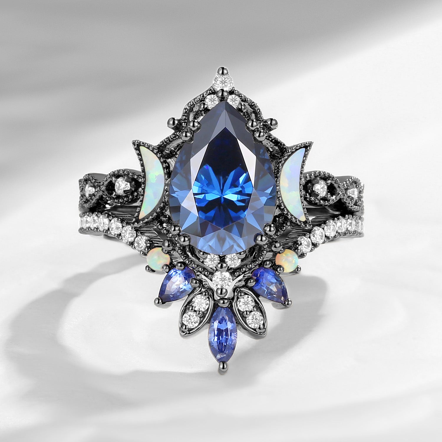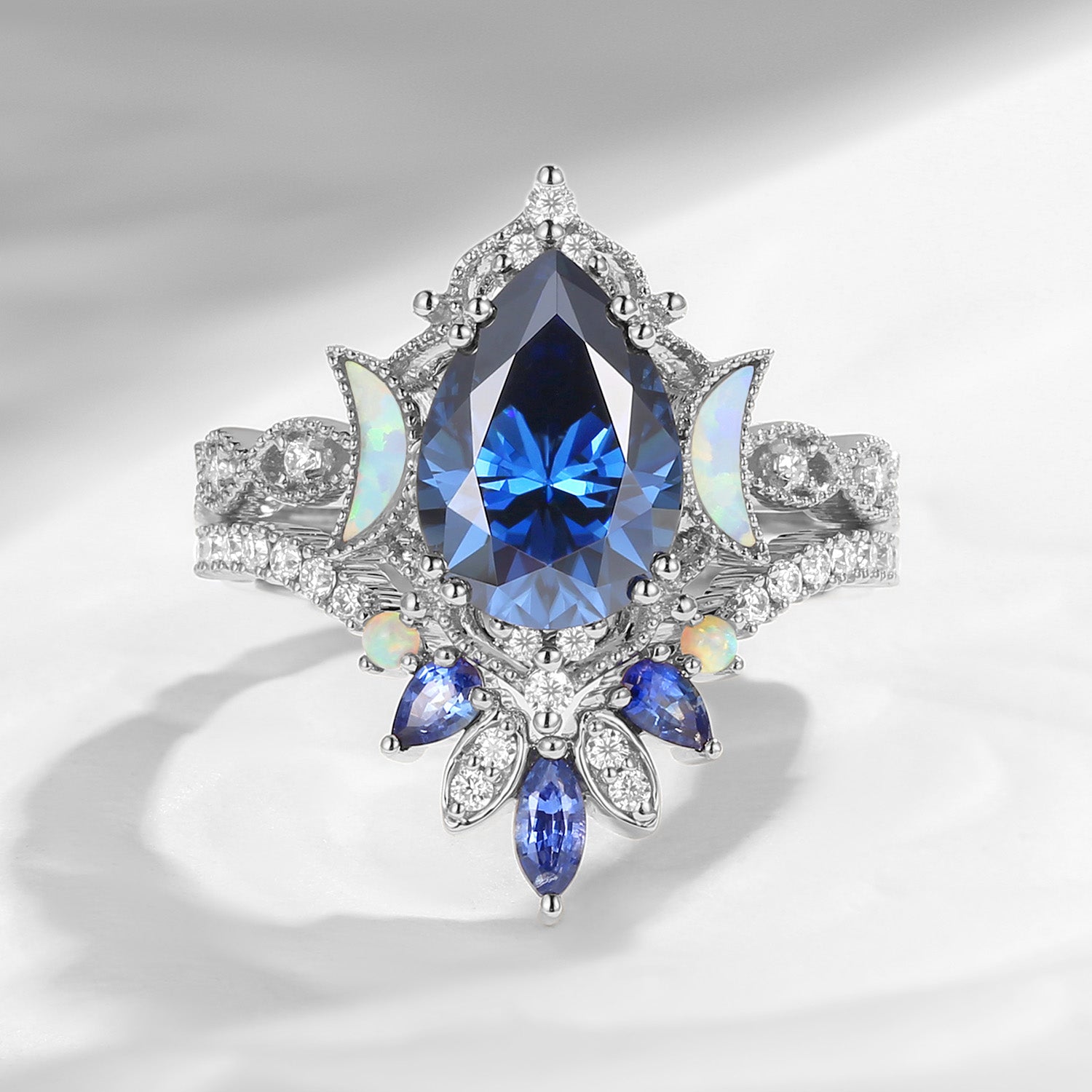 Crescent Moon | Pear Cut Royal Blue Moissanite 'Ultra Galaxy' Engagement Ring Set 2pcs