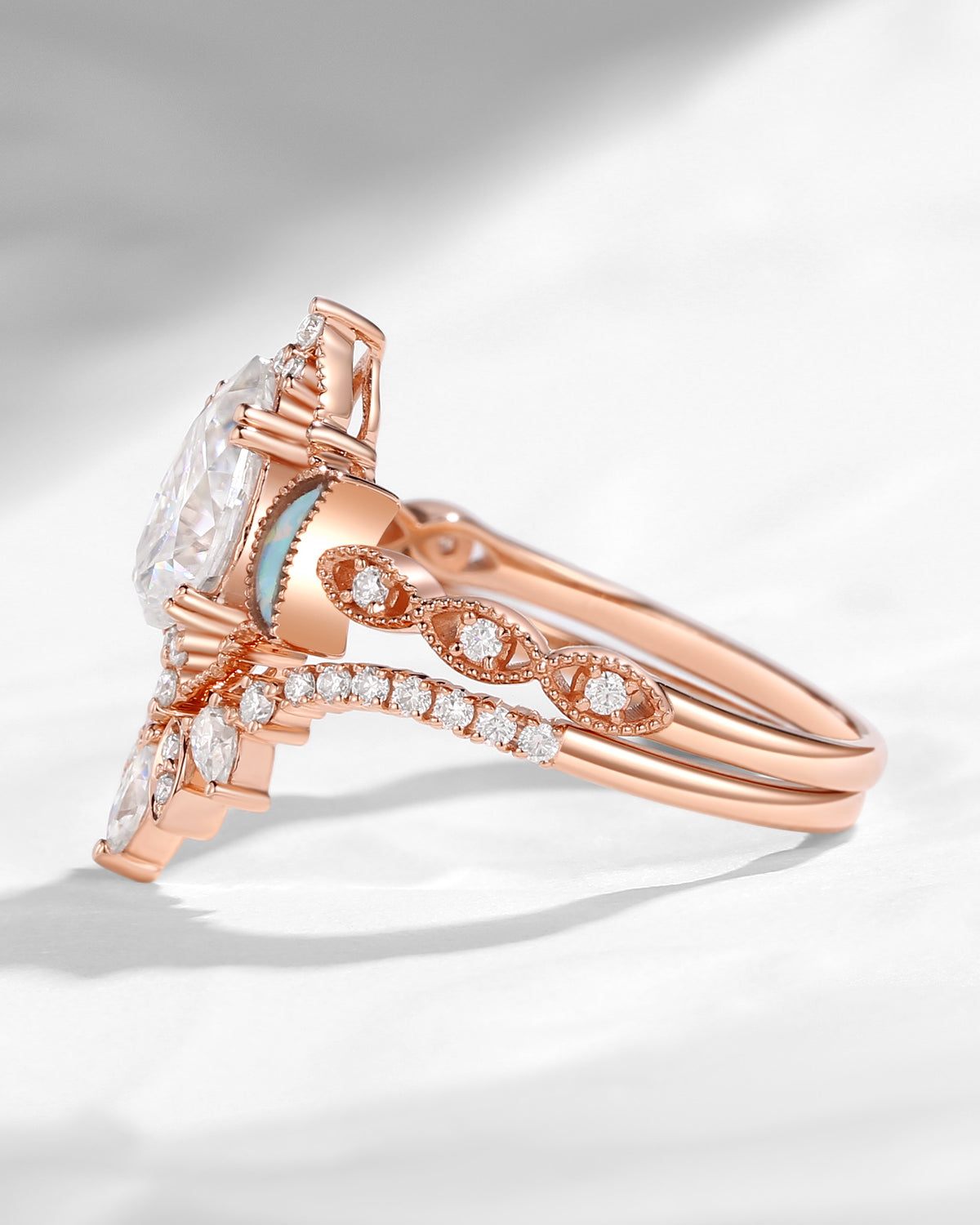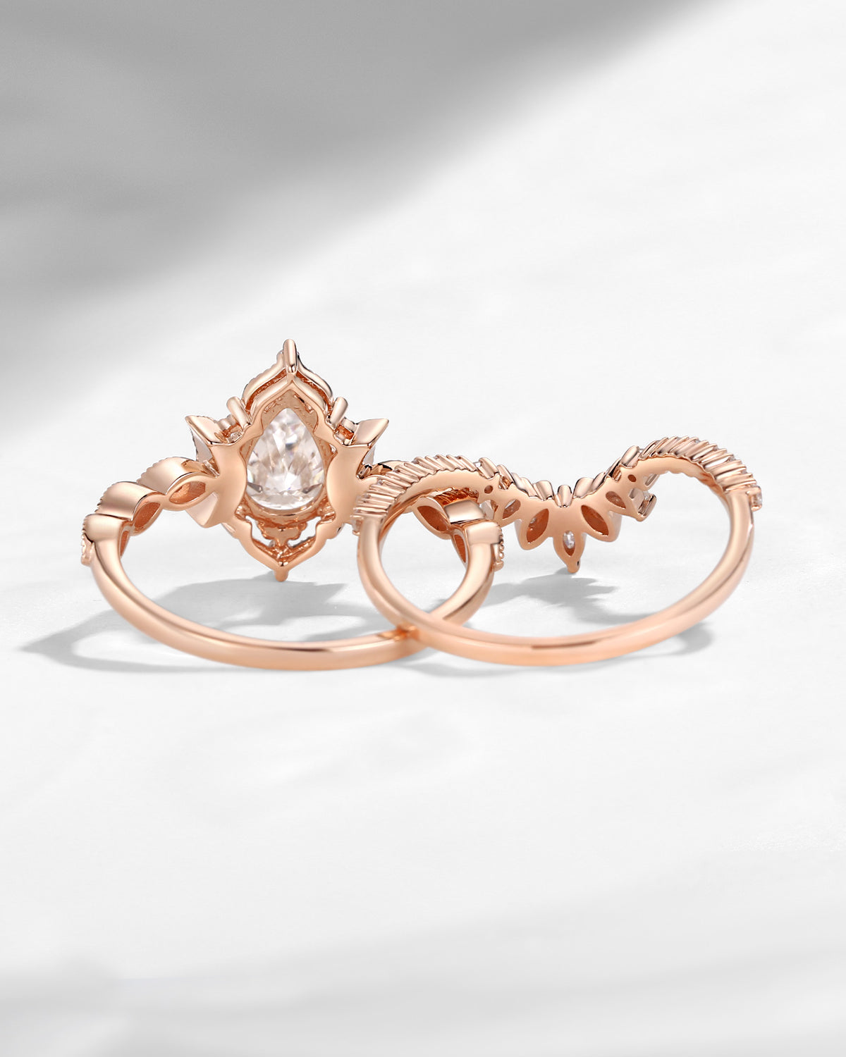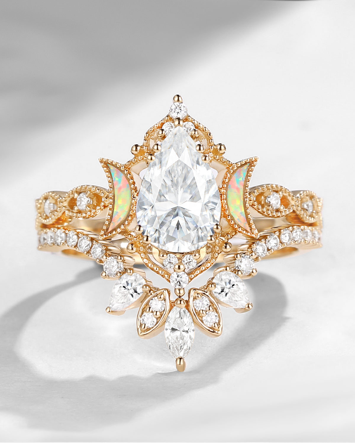 Crescent Moon | Pear Cut Moissanite 'Ultra Galaxy' Engagement Ring Set 2pcs