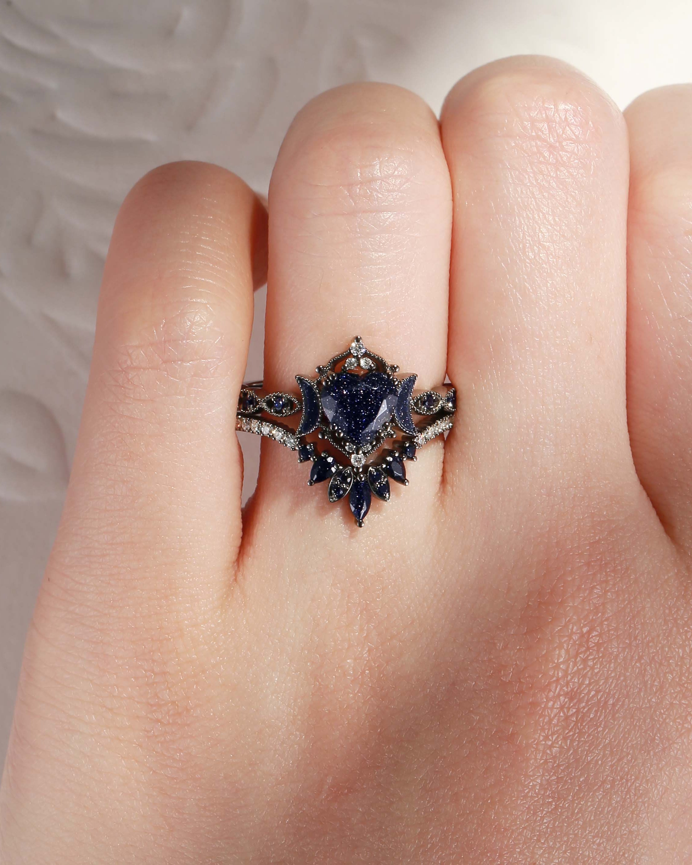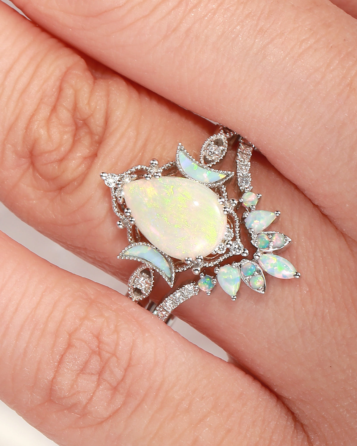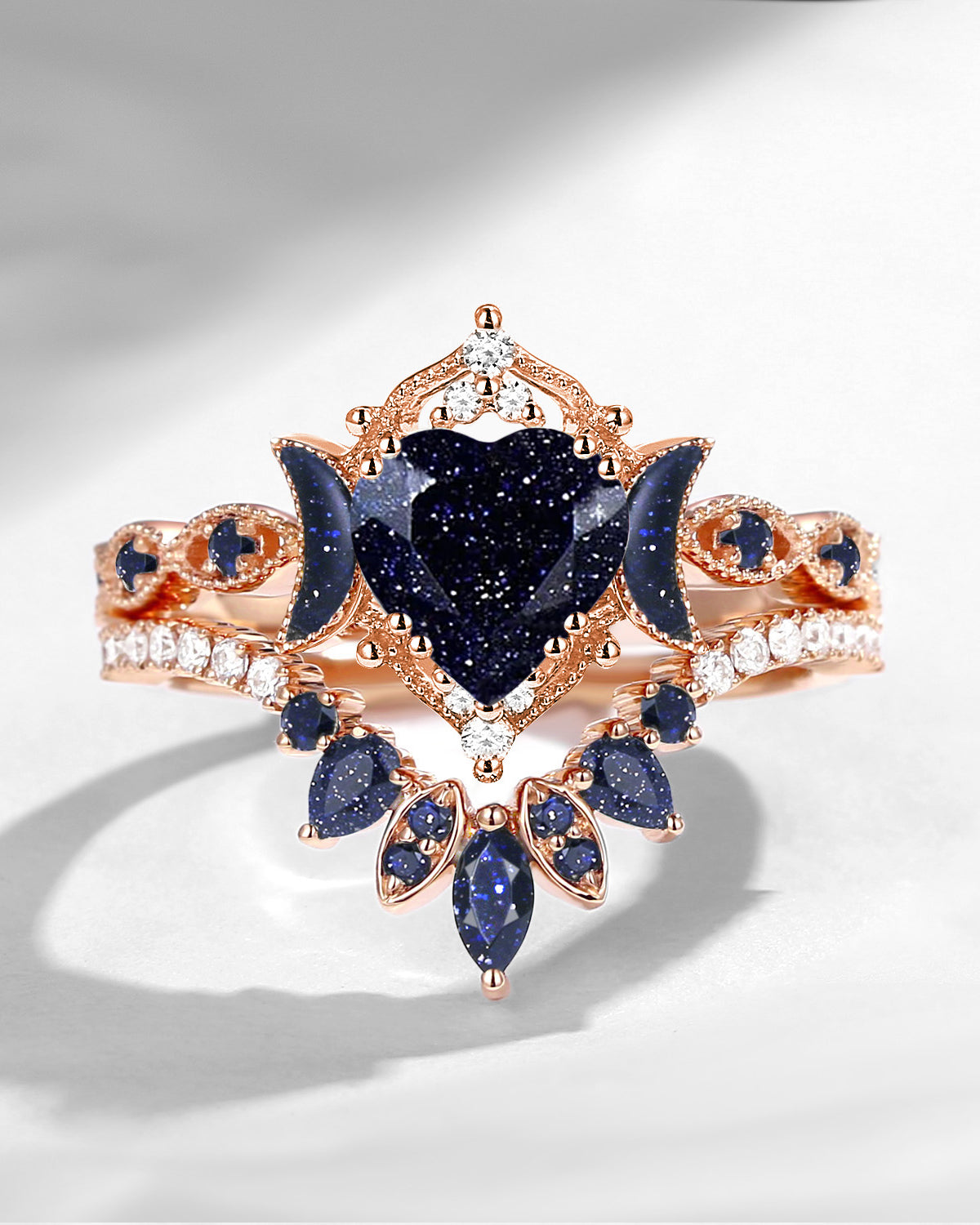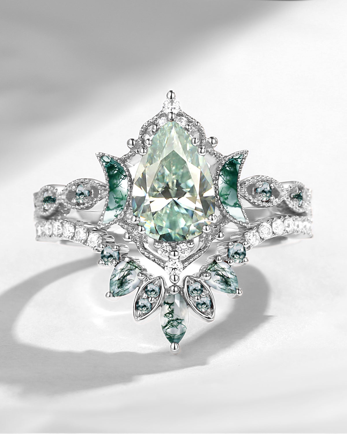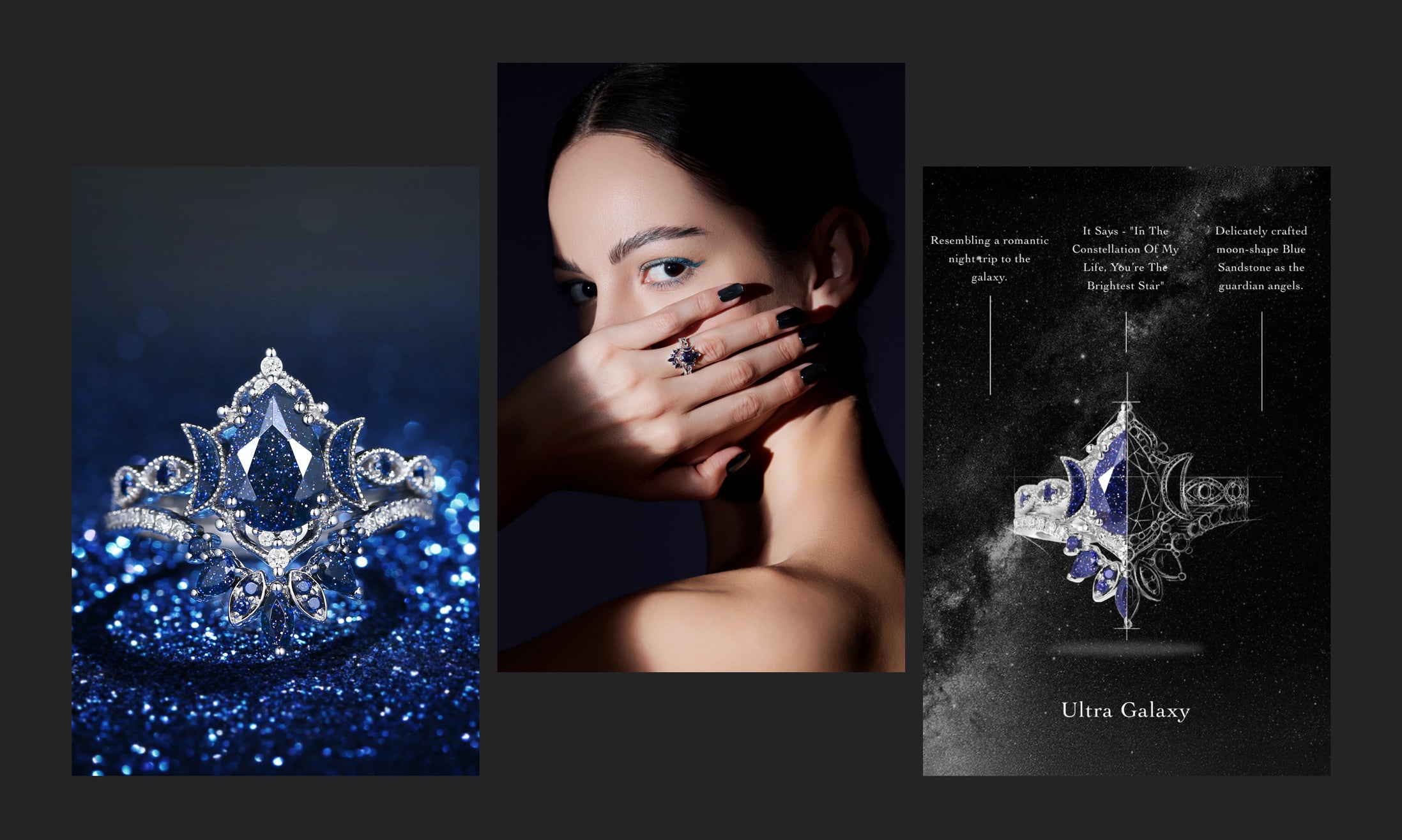 • Design - Two masterfully cut moon shaped gems guarding the center pear, clustered by little sparkly accents, mimicking a galaxy-like setting. A romantic Sci-Fi fiction at its finest. • It Says - In The Constellation Of My Life, You’re The Brightest Star.