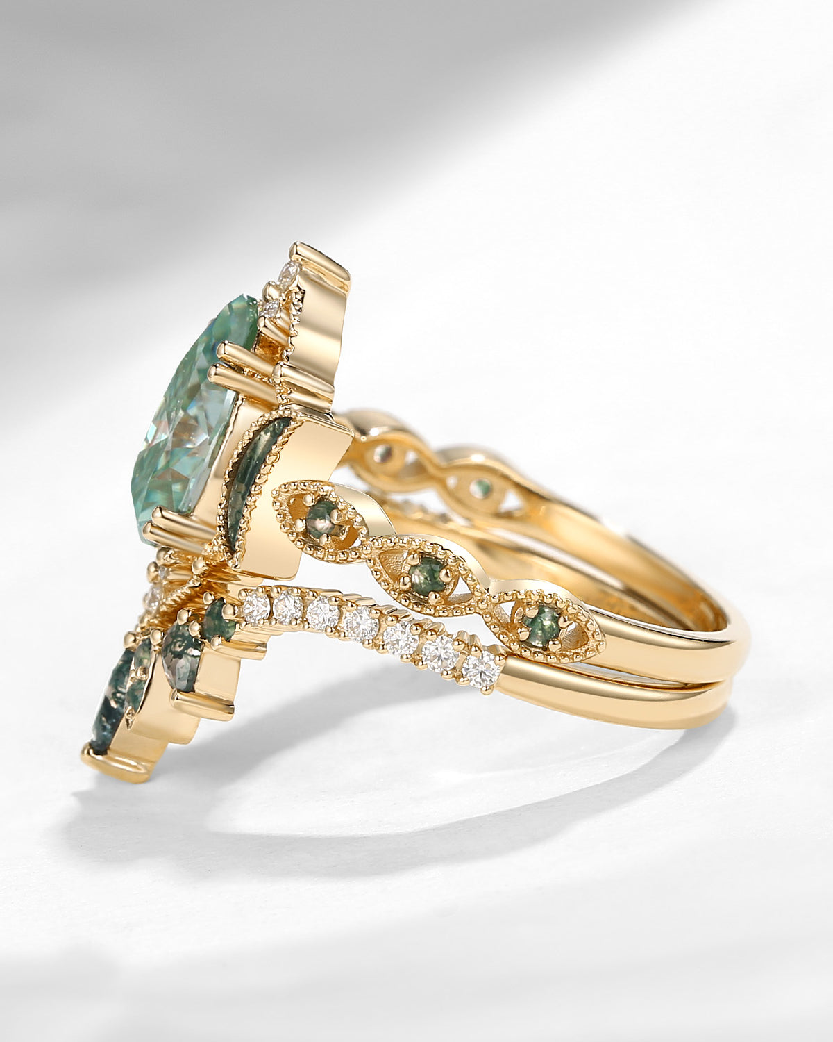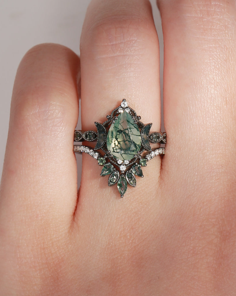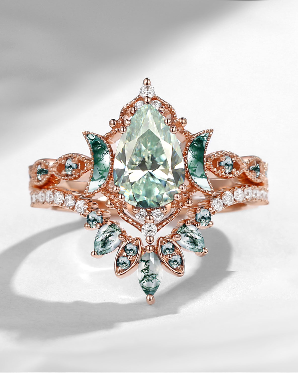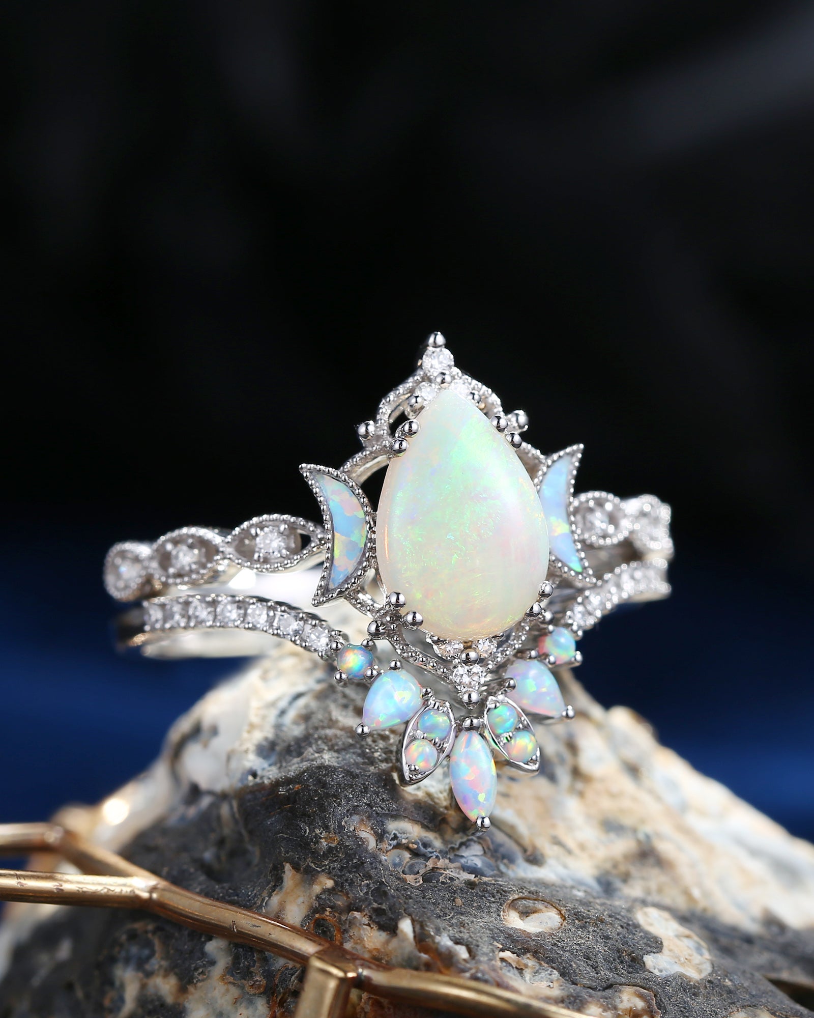 • Design - Two masterfully cut moon shaped gems guarding the center pear, clustered by little sparkly accents, mimicking a galaxy-like setting. A romantic Sci-Fi fiction at its finest. • It Says - In The Constellation Of My Life, You’re The Brightest Star.