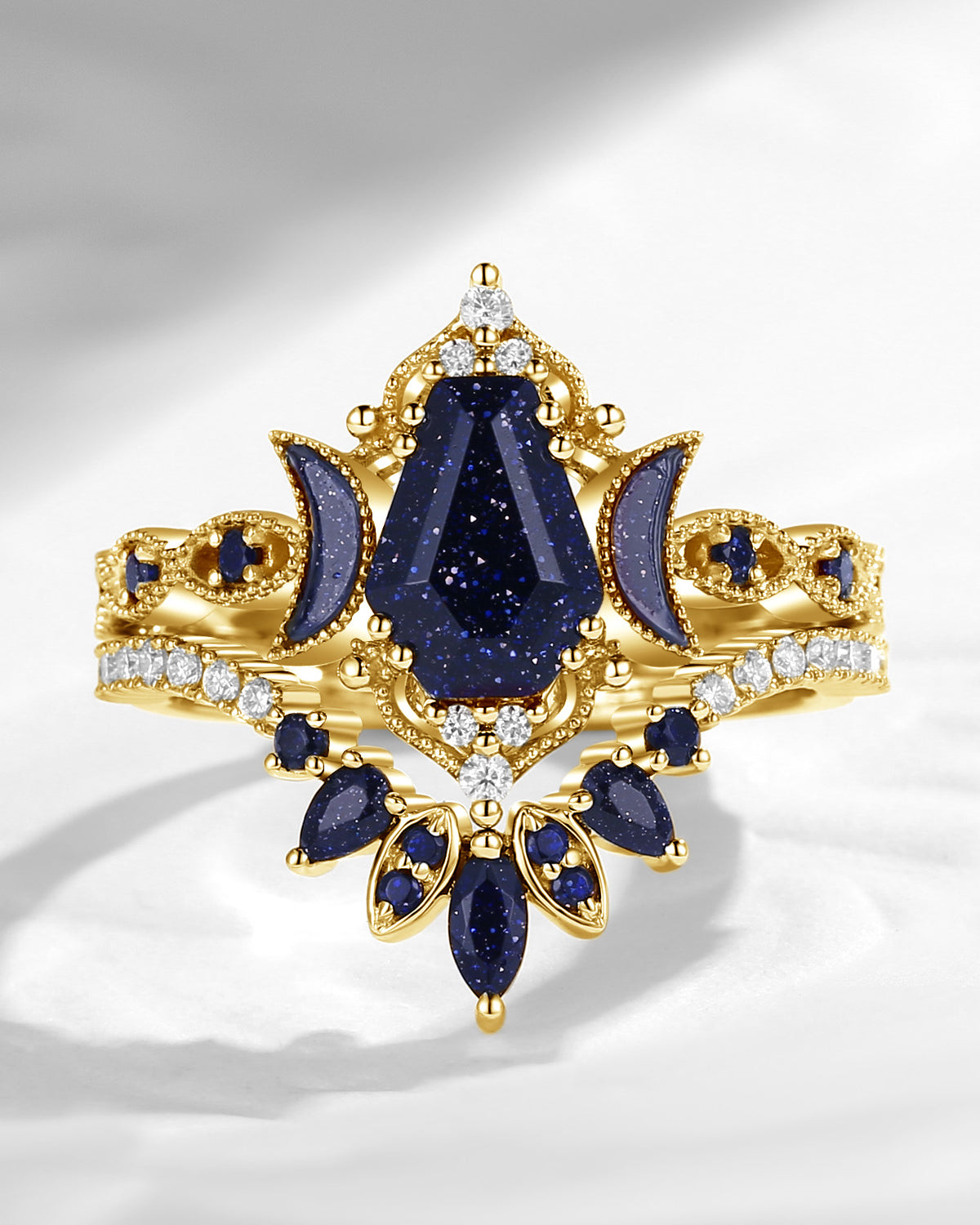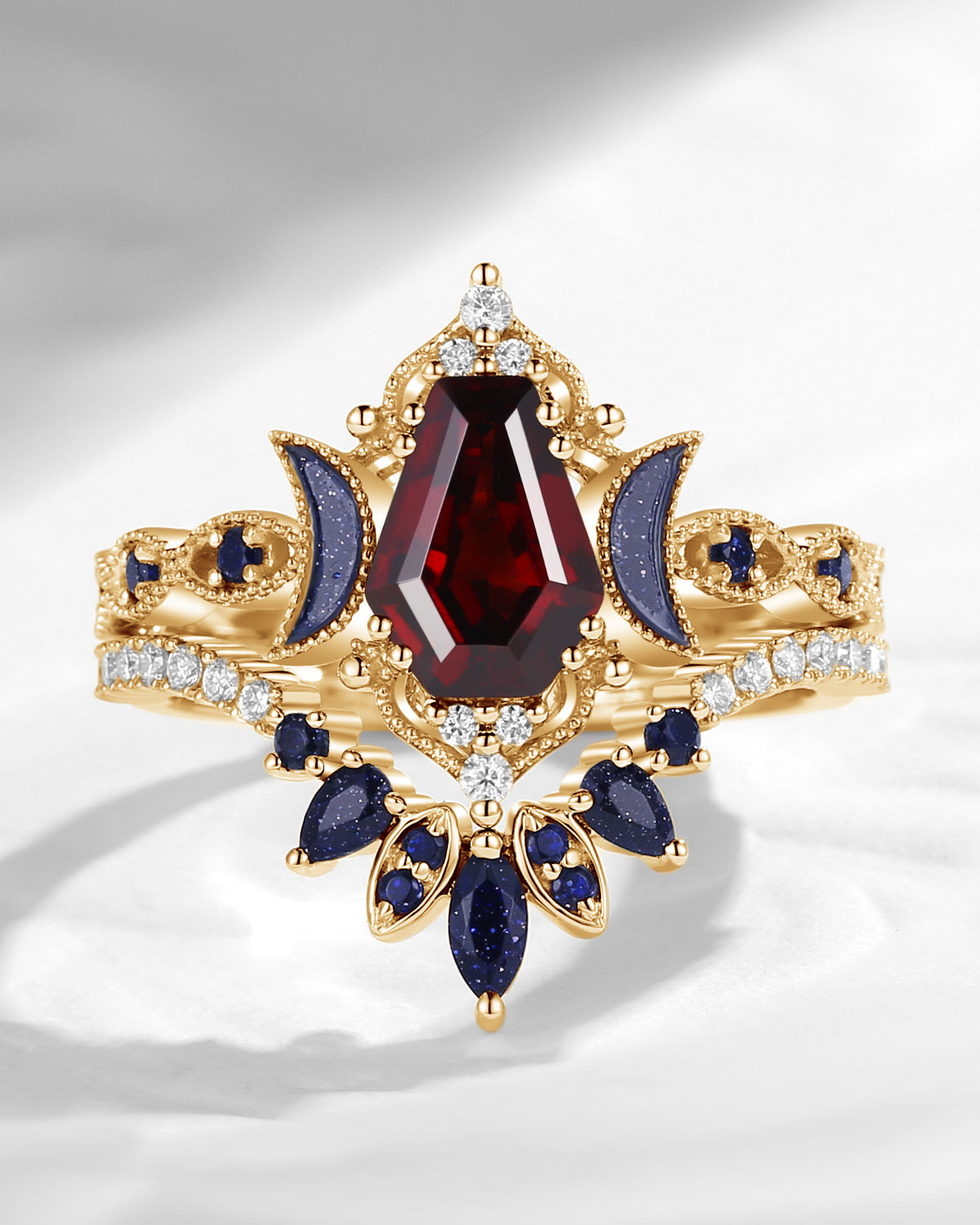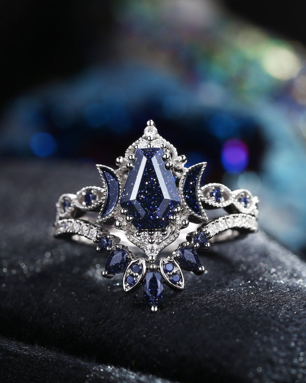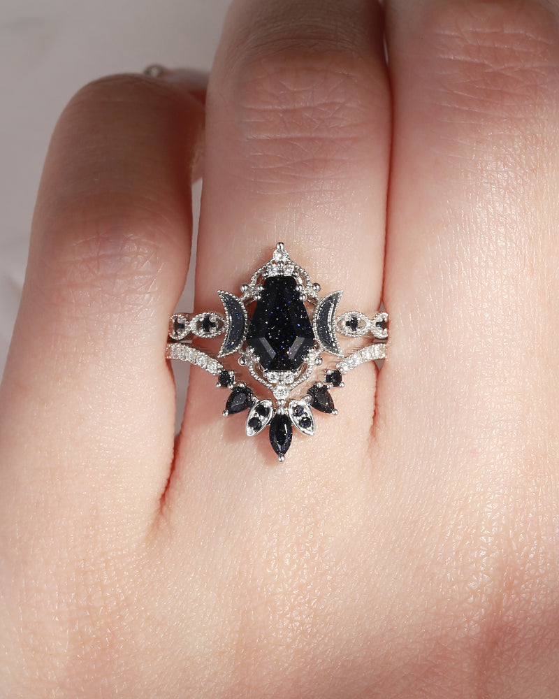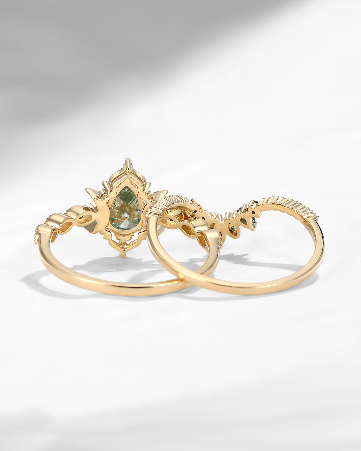 • Design - Two masterfully cut moon shaped gems guarding the center pear, clustered by little sparkly accents, mimicking a galaxy-like setting. A romantic Sci-Fi fiction at its finest. • It Says - In The Constellation Of My Life, You’re The Brightest Star.