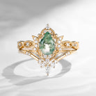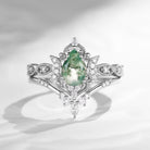 Crescent Moon | Unique Pear Shape Moss Agate Engagement Ring Set 2pcs - Luna