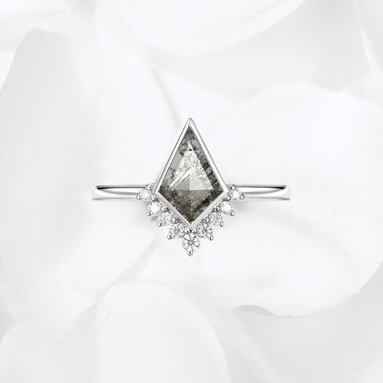 Unique Kite Shaped Salt And Pepper Diamond Engagement Ring - Fly To Love