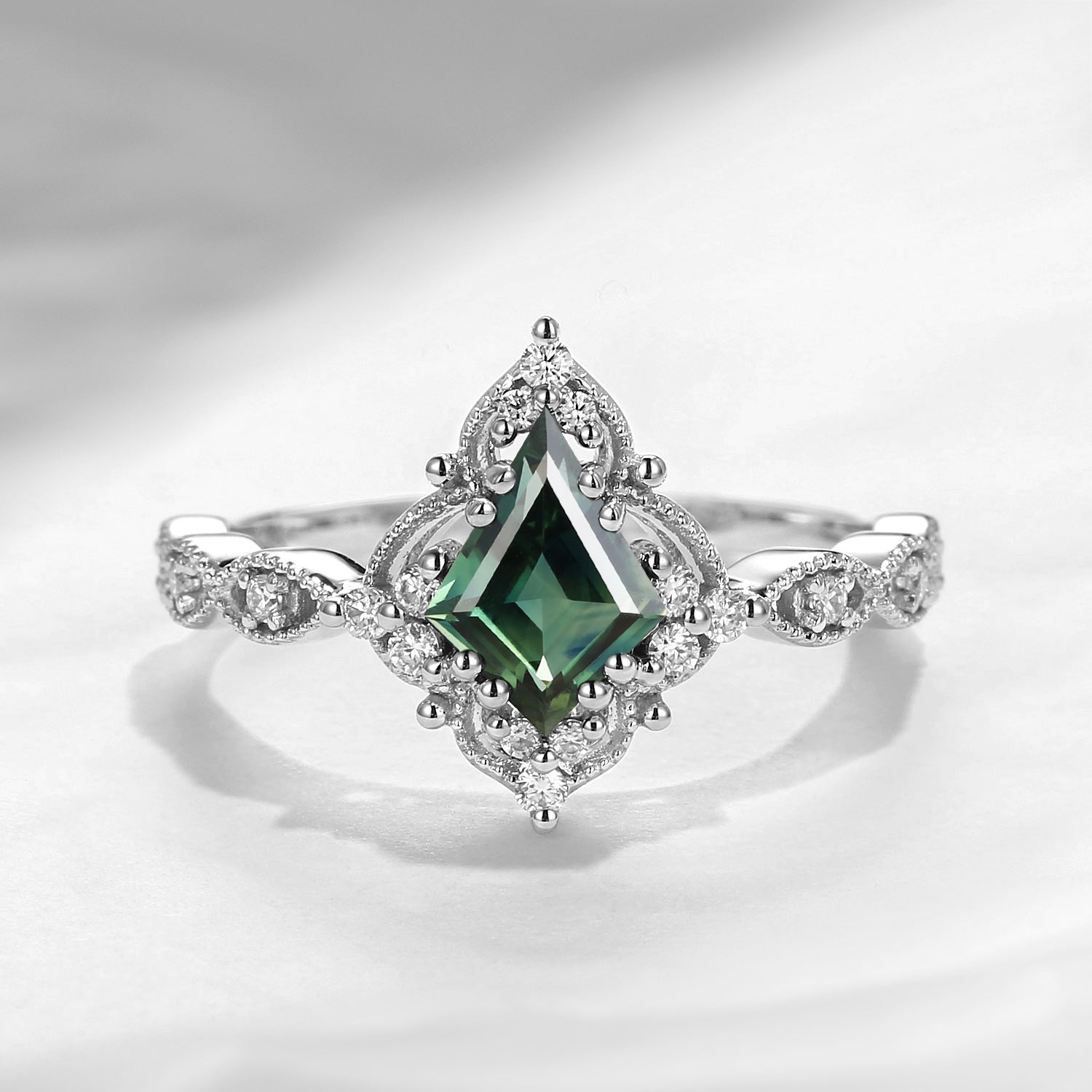 Vintage Inspired Milgrain Kite Cut Salt And Pepper Diamond Engagement Ring
