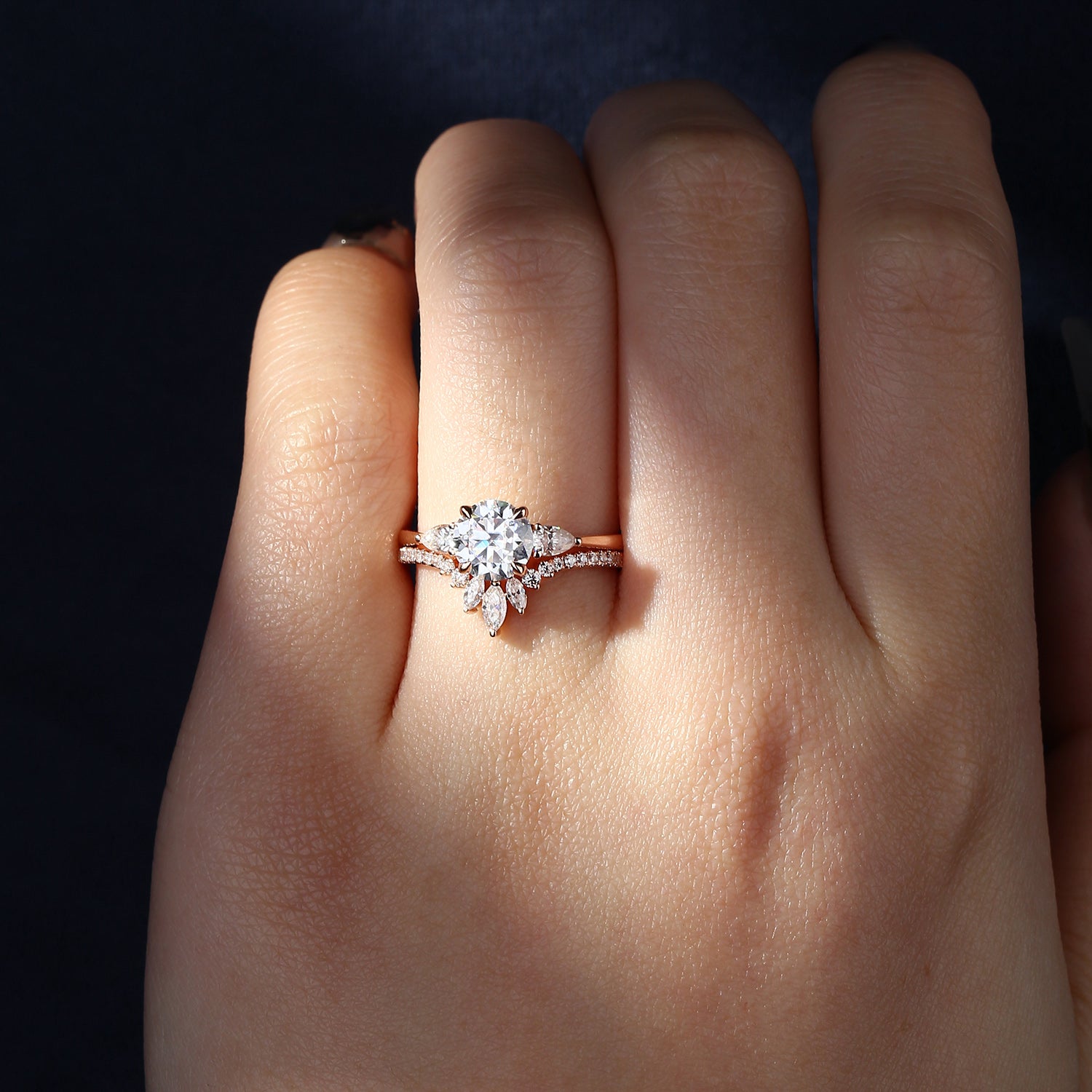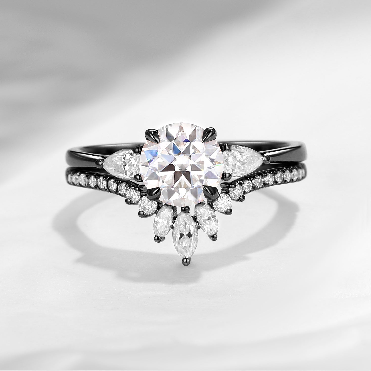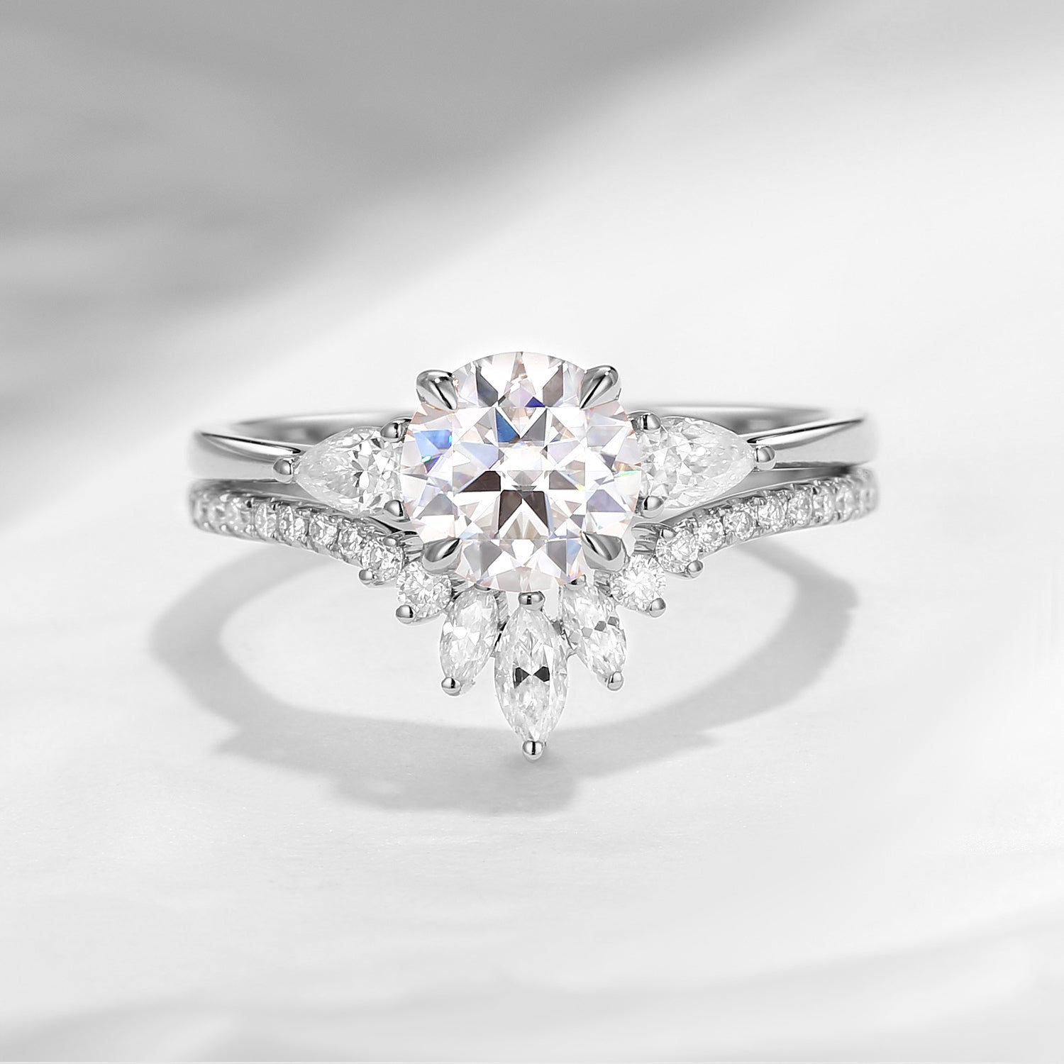 1.0-2.0ct Round Cut Lab Diamond Three-Stone Engagement Ring Set 2pcs