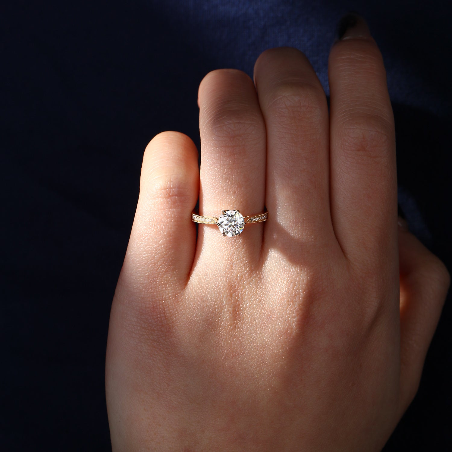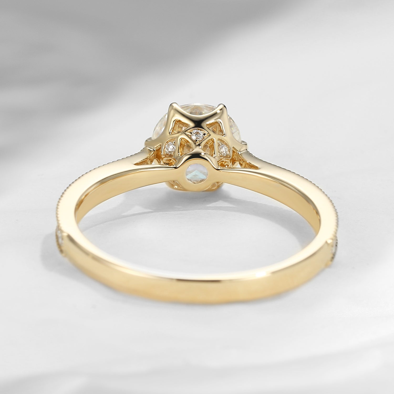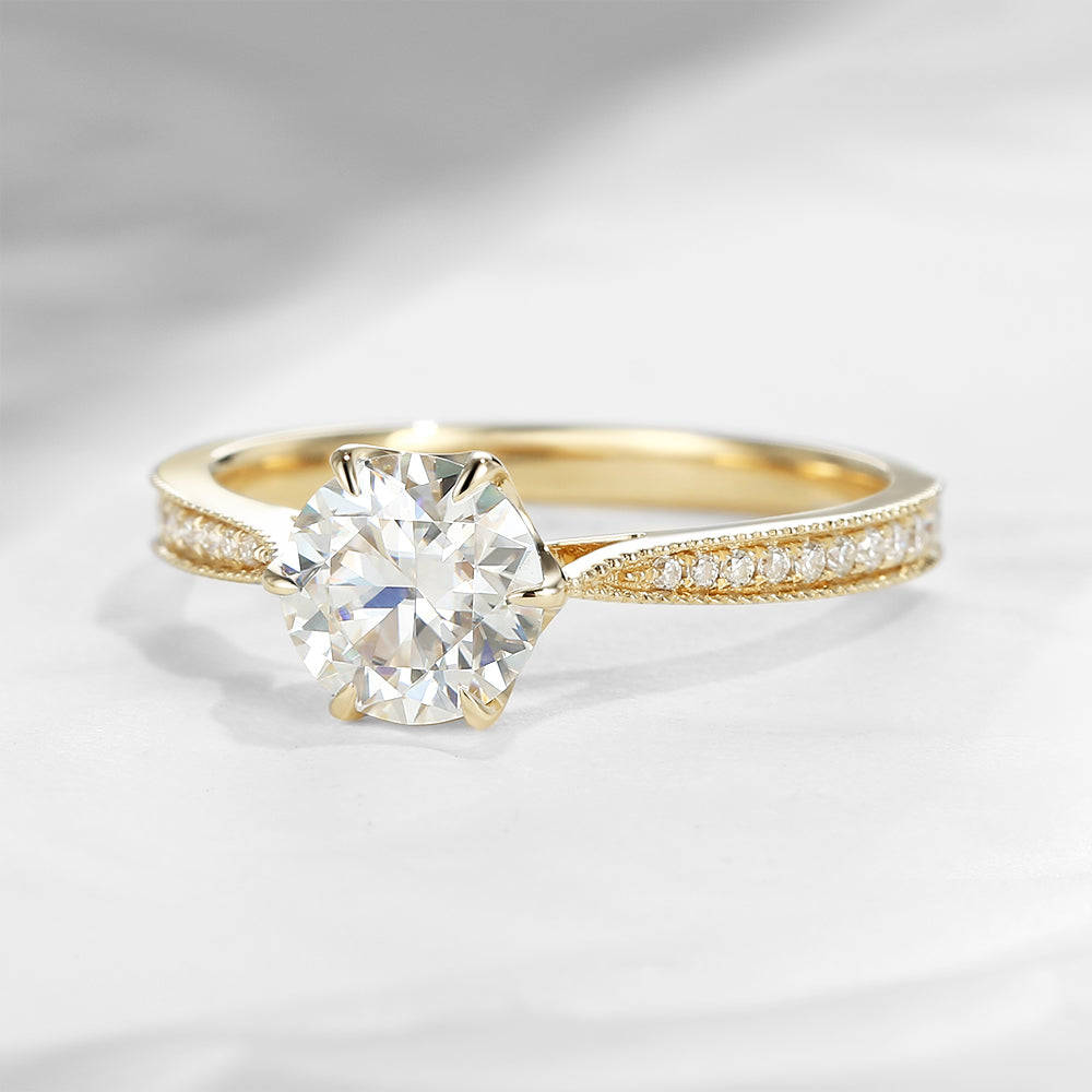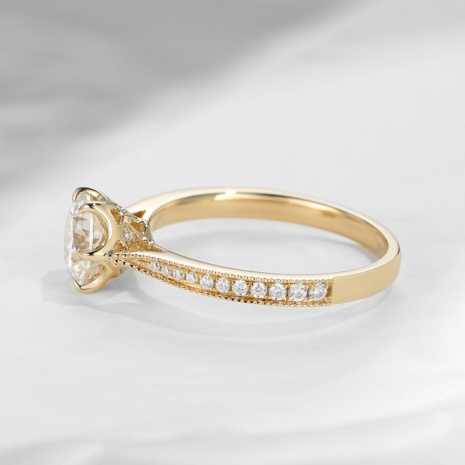 1.2ct Antique Lab Diamond Engagement Ring Solitaire Wedding Ring Milgrain Tapered Ring Flower Ring Setting Star 6 Six Claw Prongs Size Choice