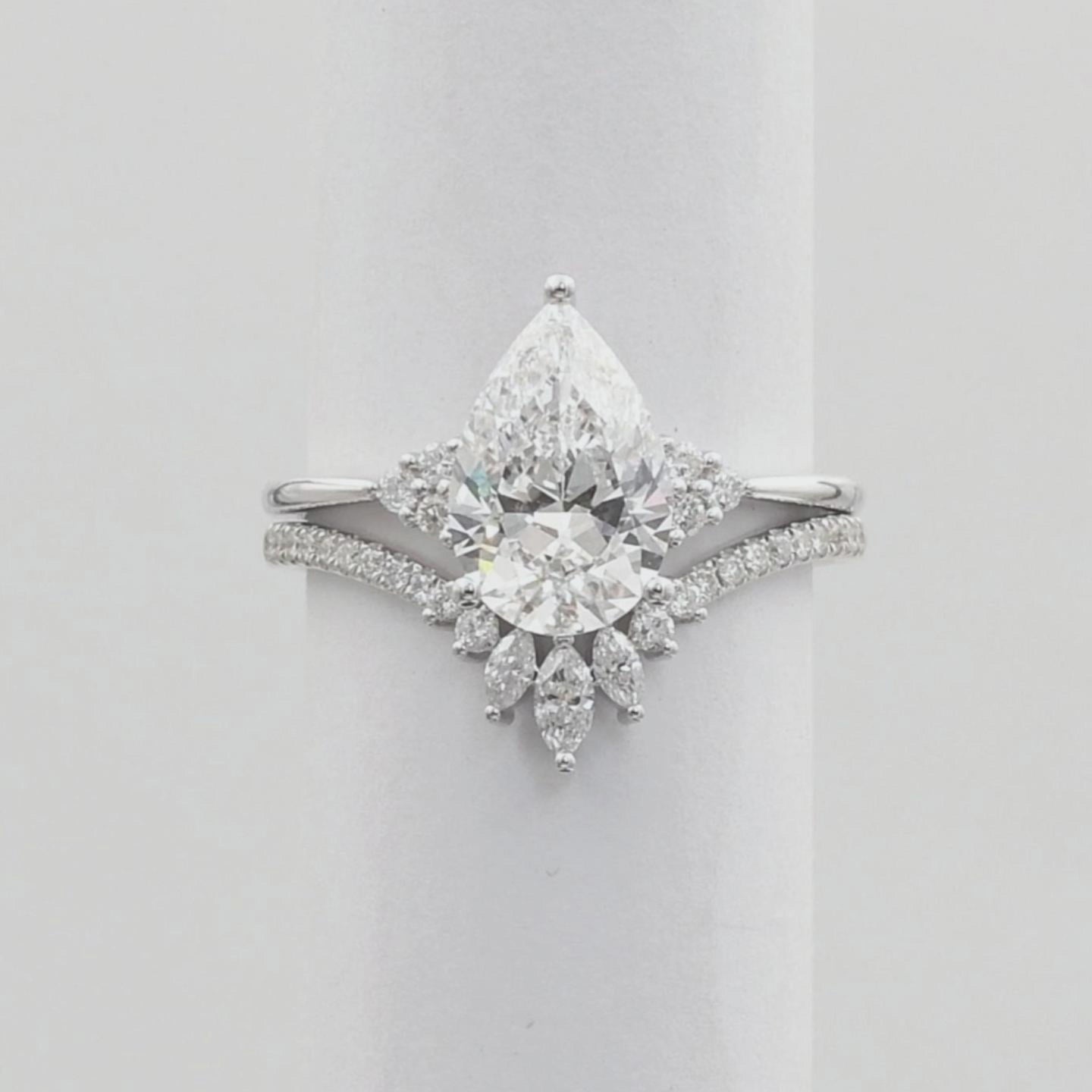 1.0ct-2.0ct Pear Cut Lab Diamond Engagement Ring Set 2pcs - Vivian
