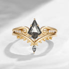 Natural Salt and Pepper Diamond Engagement Ring Unique Kite Diamond Ring Vintage Bridal Set Marquise 2pcs