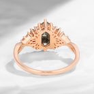 Cluster Long Hexagon Salt And Pepper Diamond Art Deco Twist Engagement Ring