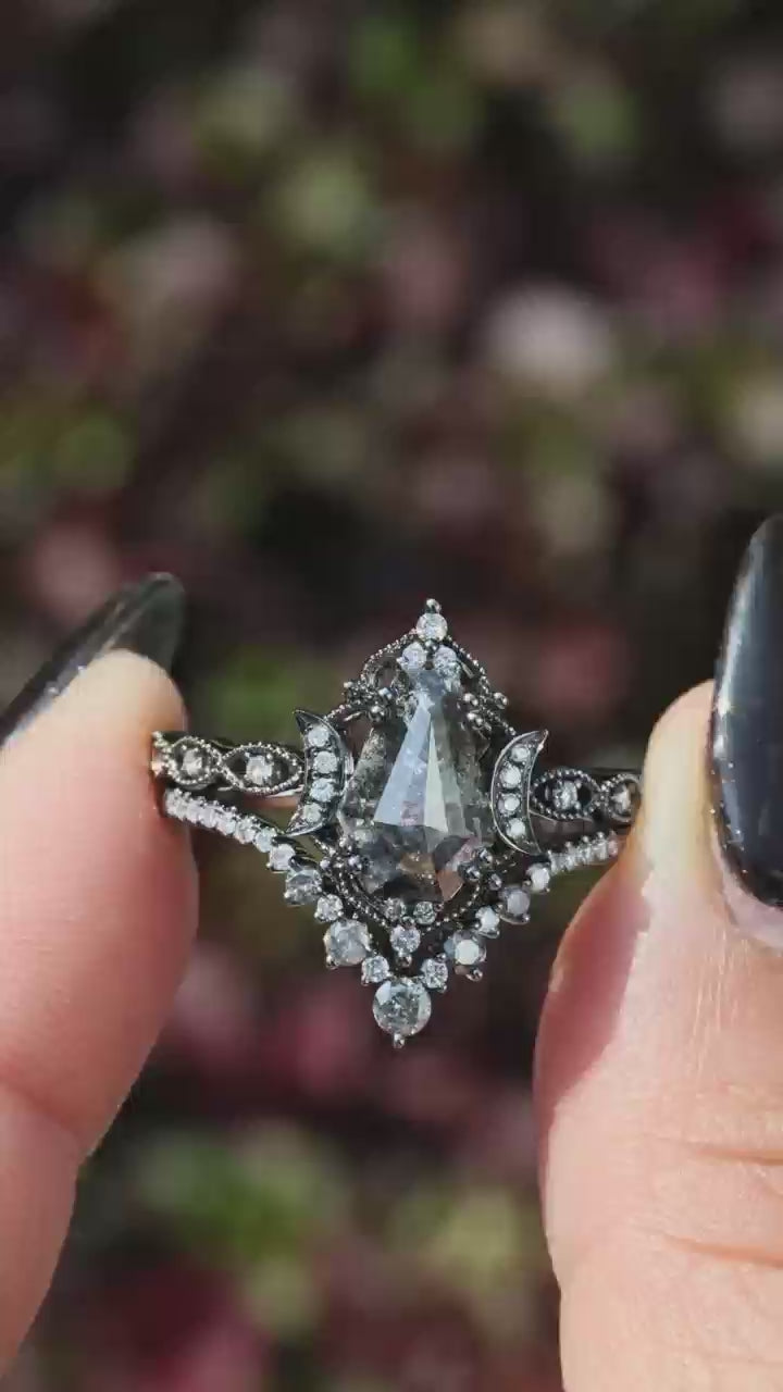 Crescent Moon | Coffin Cut Salt And Pepper Diamond 'Till Death Do Us Part' Ring Set 2pcs