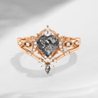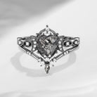 Crescent Moon | Heart Shaped Natural Salt And Pepper Diamond Engagement Ring Set 2pcs - Luna
