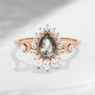 Salt And Pepper Diamond Engagement Ring Pear Halo Wedding Ring Cluster Moon Crescent Unique