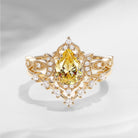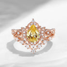 Crescent Moon | Pear Cut Yellow Lab Diamond Galaxy Engagement Ring Set 2pcs