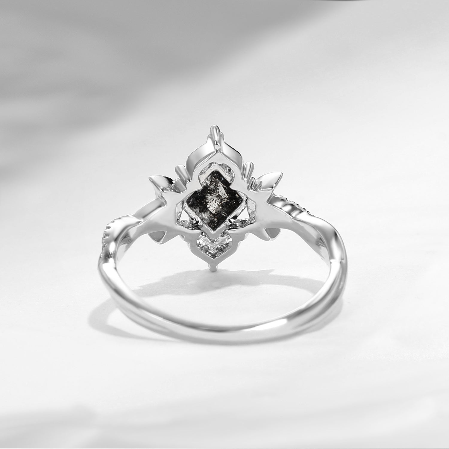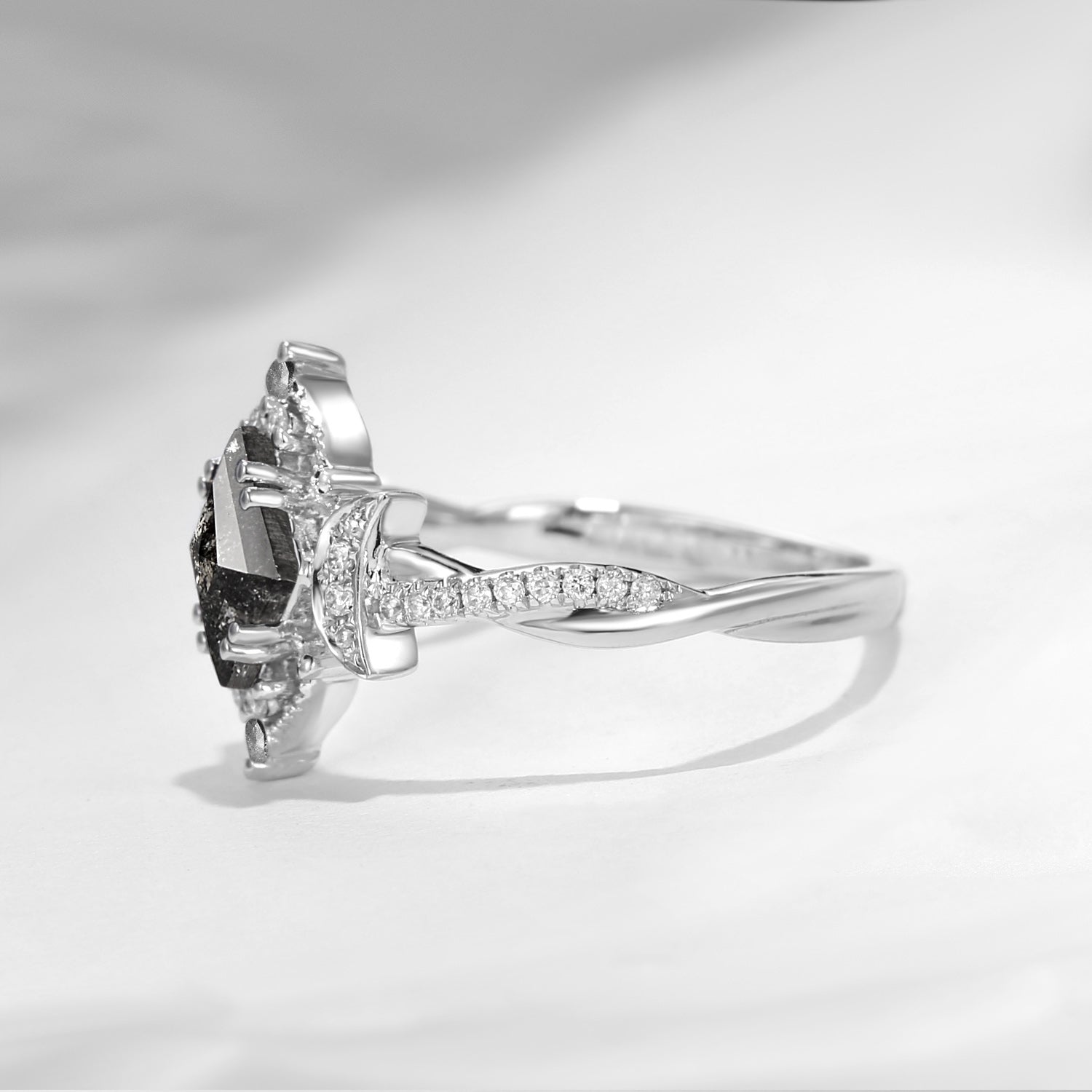 Crescent Moon | Unique Kite Salt and Pepper Diamond Twisted Engagement Ring Unique Diamond Ring White Gold Vintage Diamond Ring