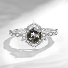 ⟢ Center Stone: Natural Salt and Pepper Diamond, fancy hexagon shape, 6mm