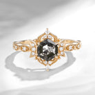 Vintage Hexagon Salt and Pepper Ring Vintage Hexagon Diamond Ring Yellow Gold Ring Fancy Hexagon Wedding Ring Promise ring