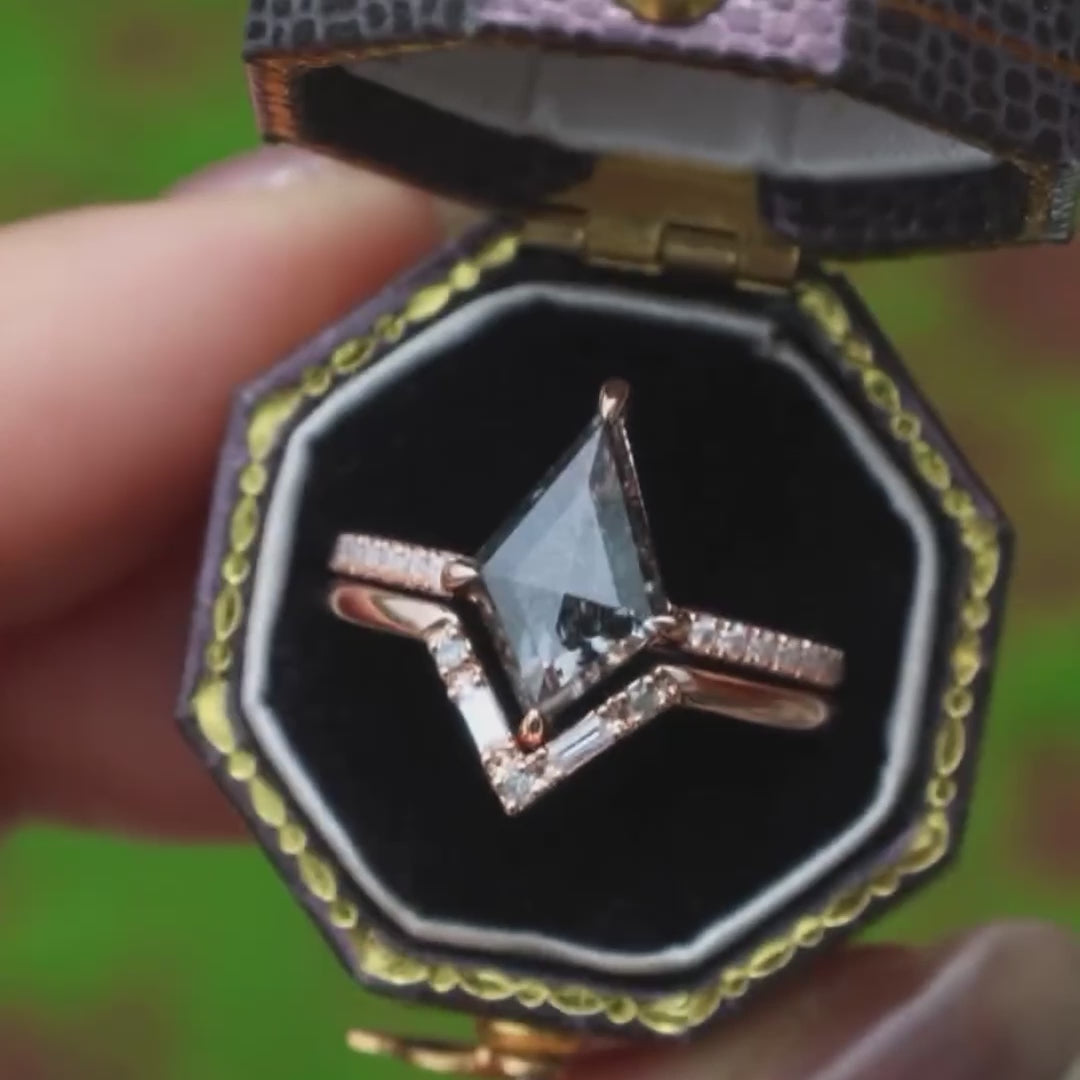 Kite Cut Natural Salt And Pepper Diamond Art Deco Engagement Ring Set 2pcs