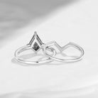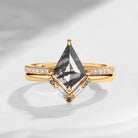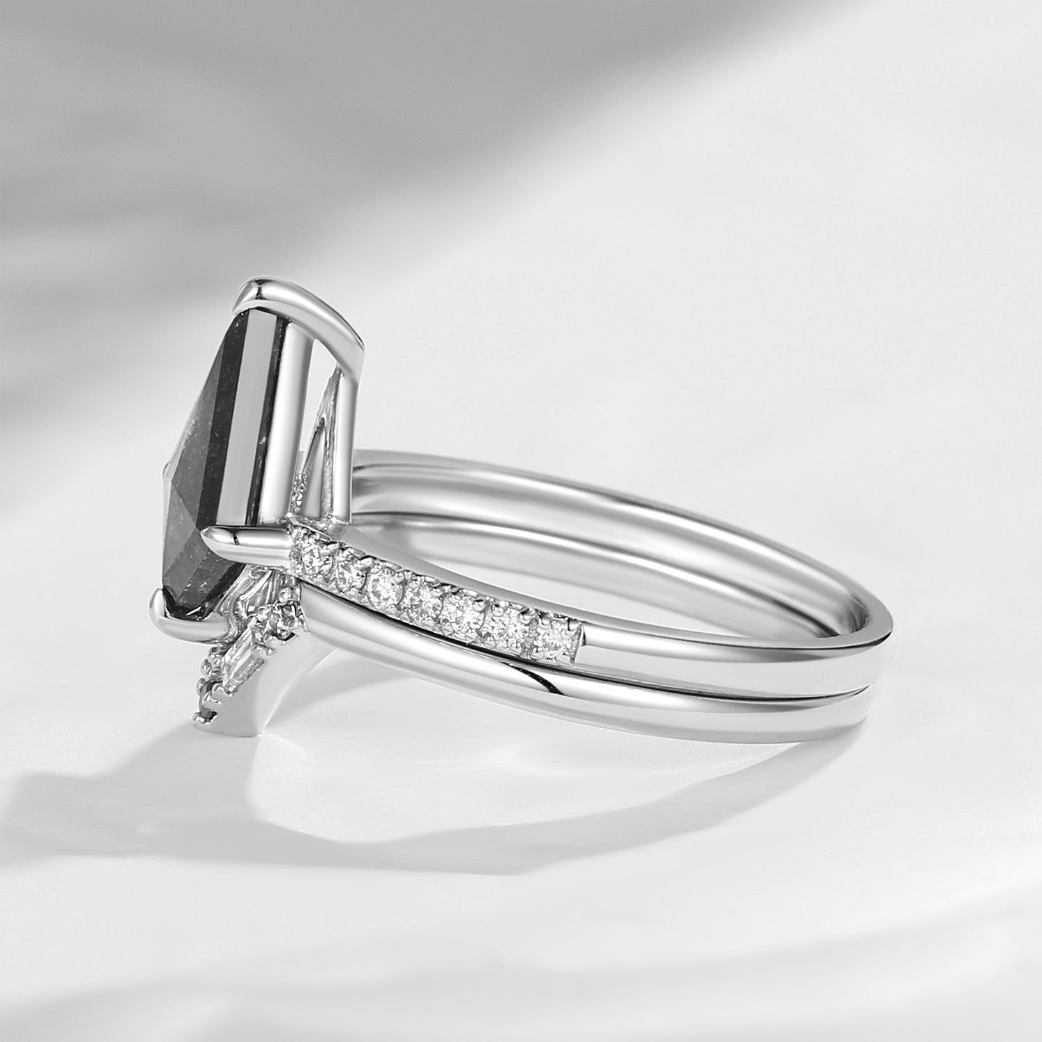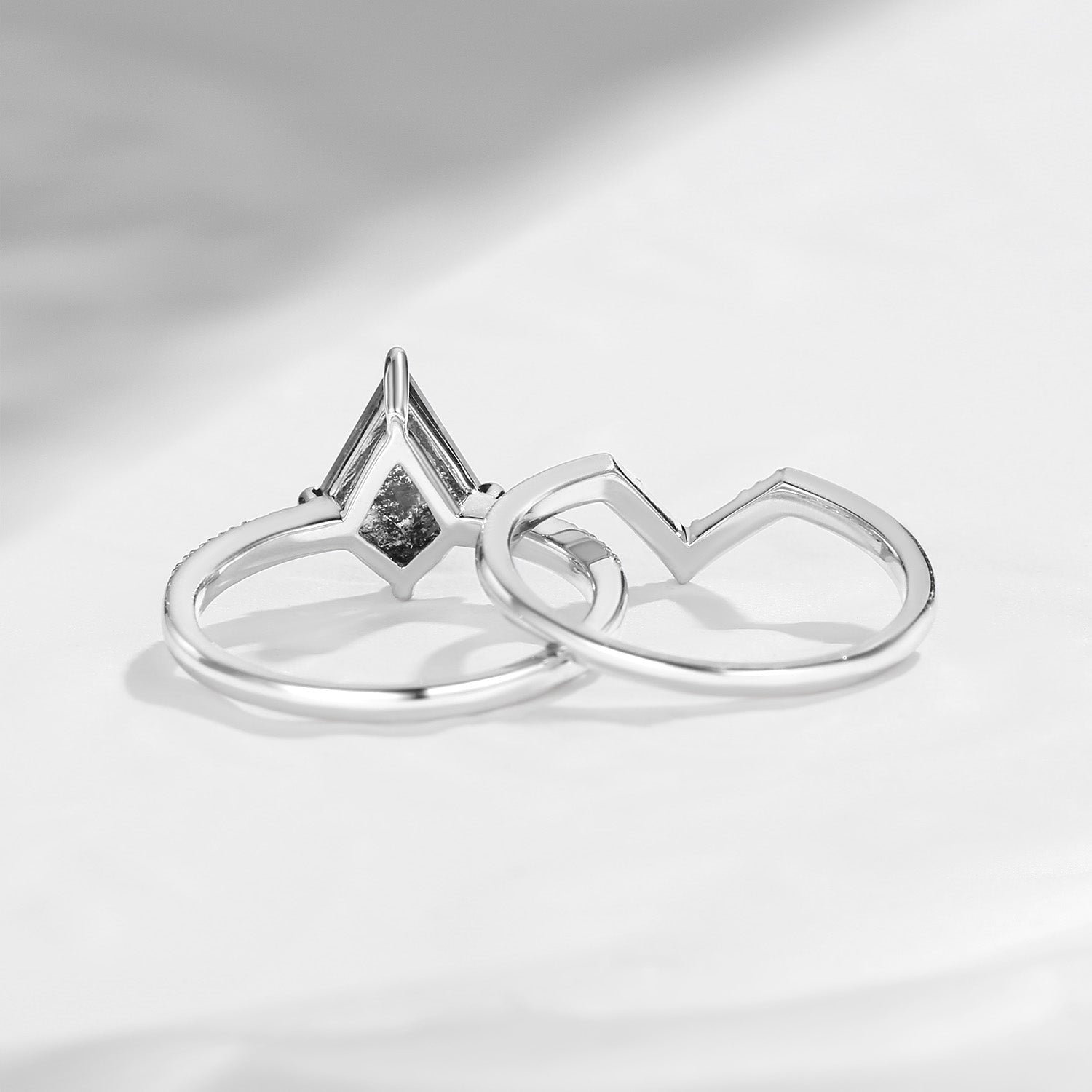 Kite Cut Salt And Pepper Diamond Art-Deco Engagement Ring Set 2pcs Vintage Bridal Ring Set Promise Ring Women