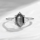 Long Hexagon Salt and Pepper Geometric Three-Stone Engagement Ring