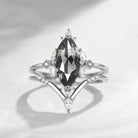 Marquise Cut Natural Salt And Pepper Diamond Solitaire Ring Set 2pcs