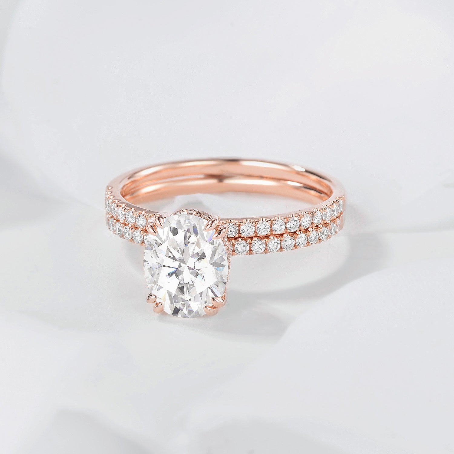 1.0-2.0ct Oval Cut Lab Diamond Classic Pavé Ring Set 2pcs