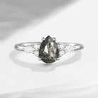 Natural Salt and Pepper Diamond Cluster Engagement Ring Pear Shaped Diamond Ring White Gold Wedding Ring Unique Bridal Ring Promise Anniversary Ring