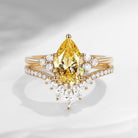 Pear Cut Yellow Lab Diamond Cluster Engagement Ring Set 2pcs - Vivian
