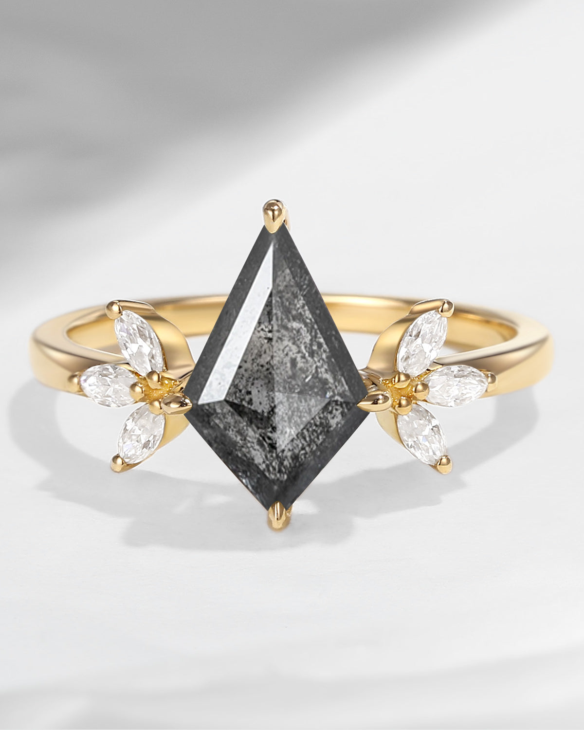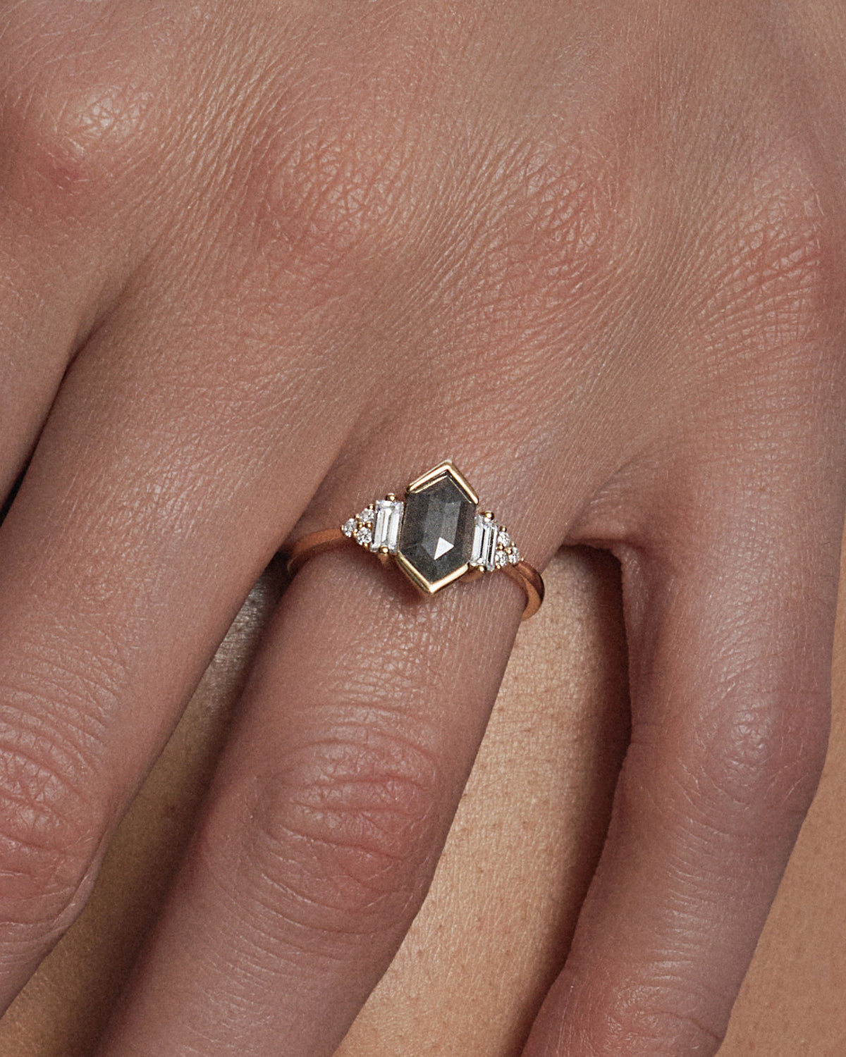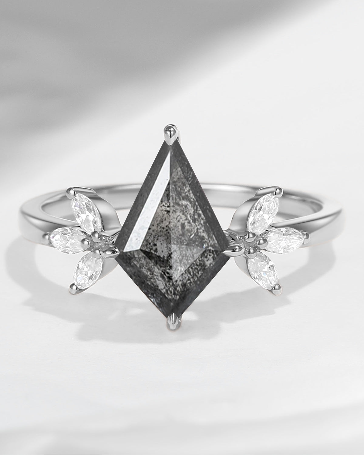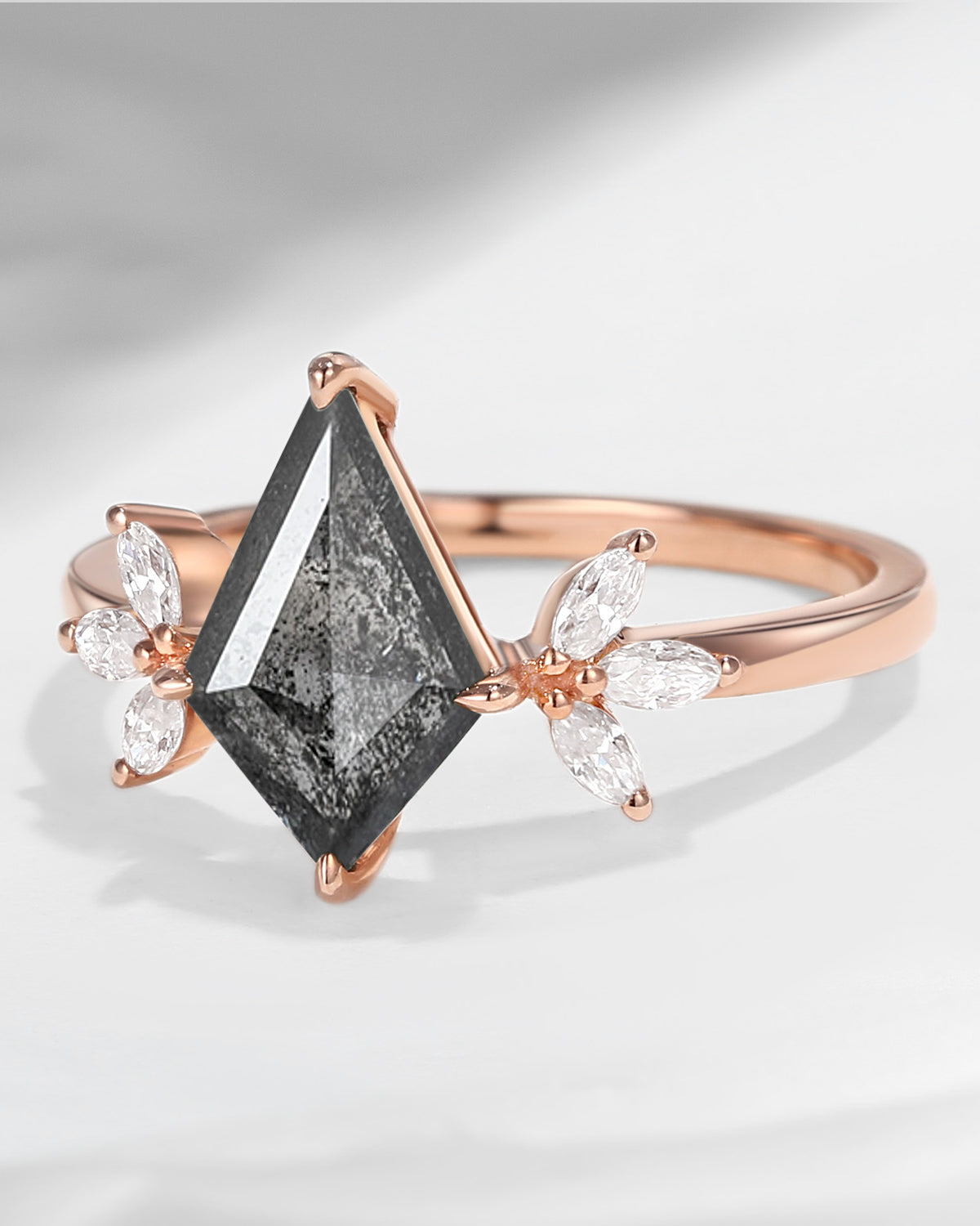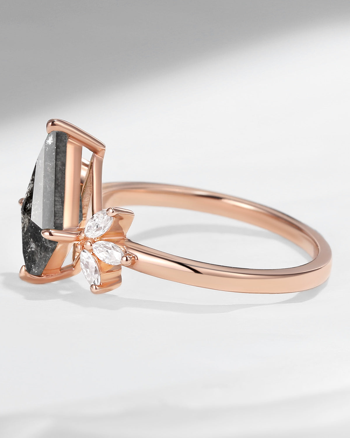 Long Hexagon Natural Salt And Pepper Diamond Vintage Cluster Engagement Ring