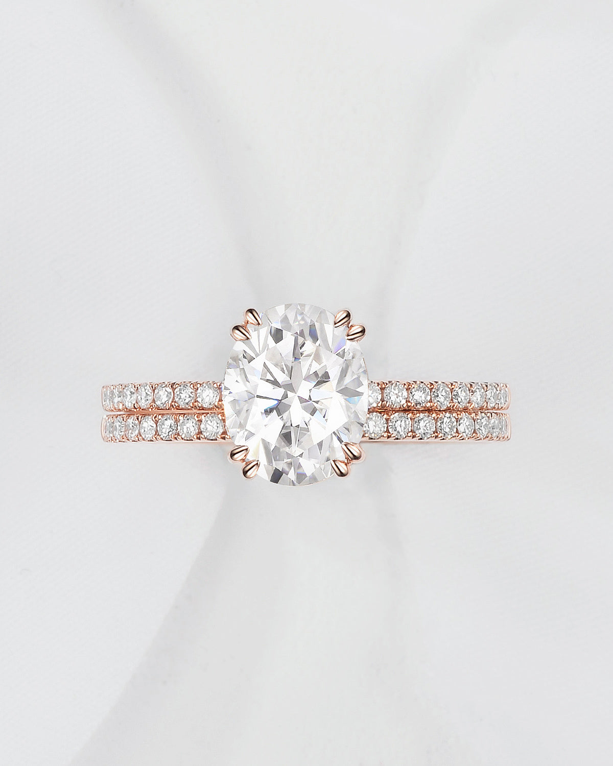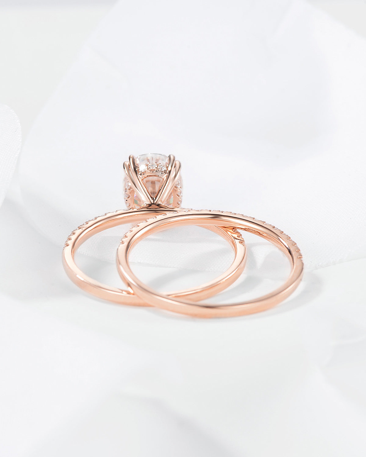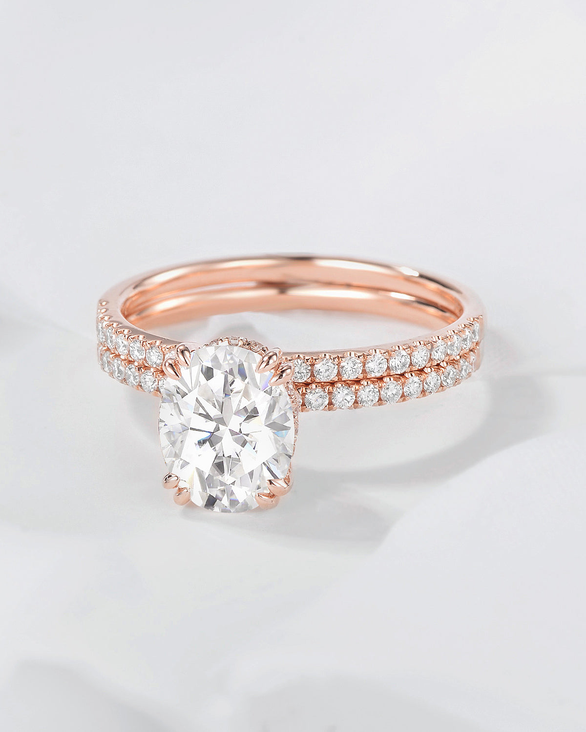 1.0-2.0ct Oval Cut Lab Diamond Classic Pavé Ring Set 2pcs