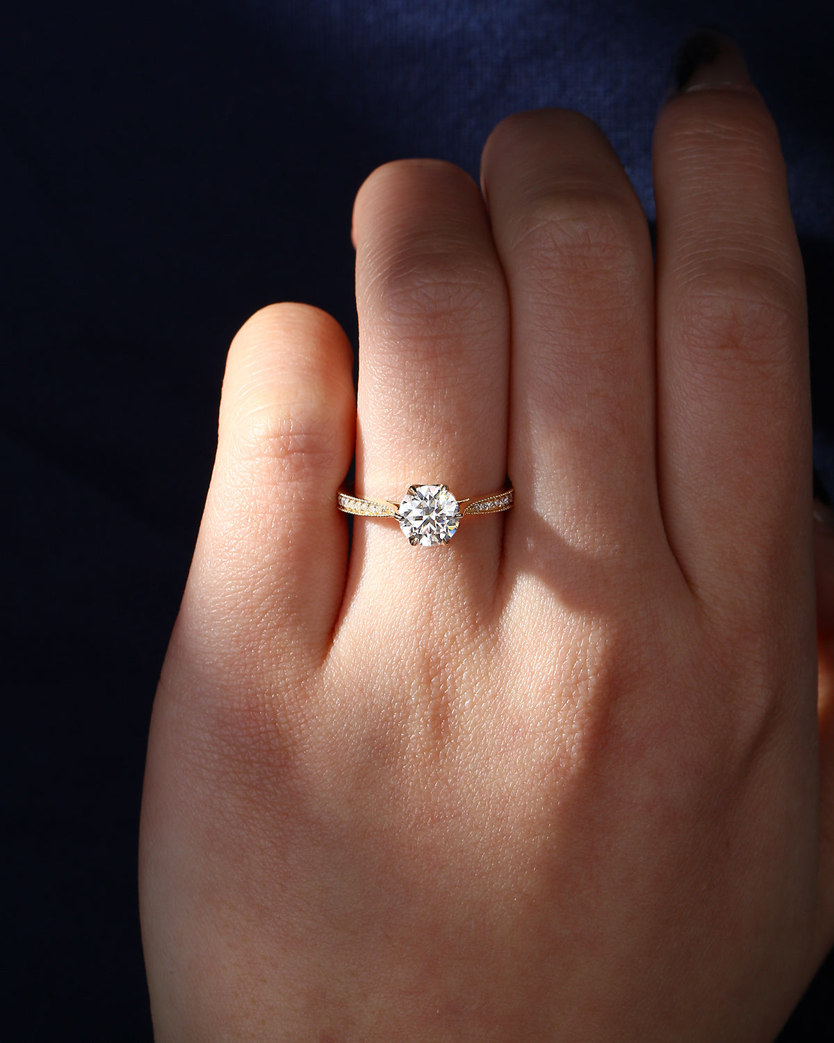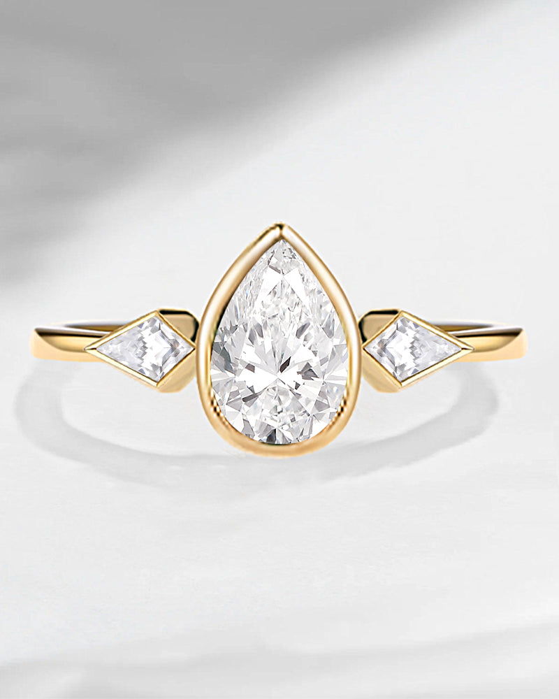 Solitaire Pear Shaped Lab Diamond Engagement Ring - Kite Wing